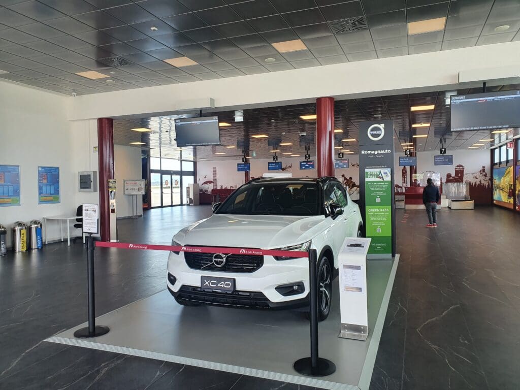 Whilst I do not usually like to cut things so fine, given the terminal’s small size and the fact that the Albawings’ thrice weekly service to Tirana was the only scheduled passenger service to serve Forlì at that time, despite my late arrival I did not foresee any issues with catching my flight that afternoon. Once I had paid the extortionate €15 fare to my taxi driver, I got out of the car and stopped for a few moments to admire Forlì Airport’s terminal building. Admittedly, it would be hard to claim that the exterior of this serves to be an architectural masterpiece, instead taking the form of a rather nondescript-looking small single-story building. Upon entering the terminal I was greeted by a brand new and shiny Volvo XC40 on display, behind which the terminal’s seven check-in desks could be seen. Of these, at that time three were staffed by Albawings staff, all dressed smartly in the airline’s mostly grey ground crew uniform.