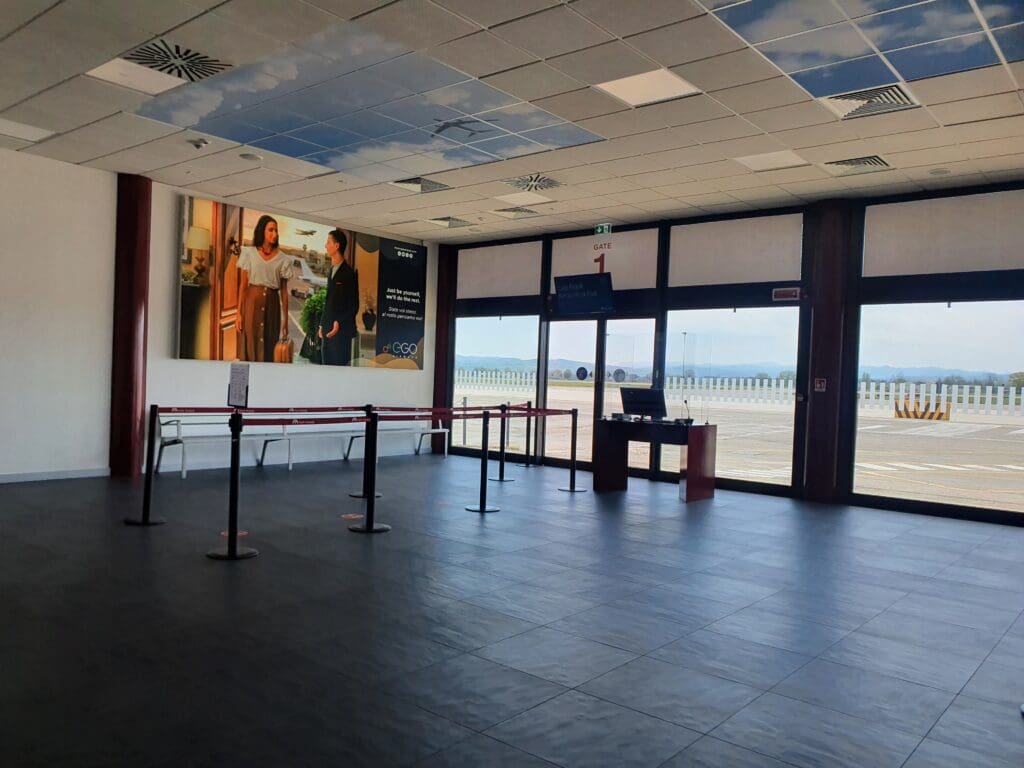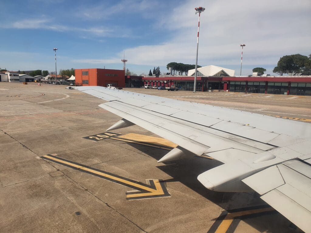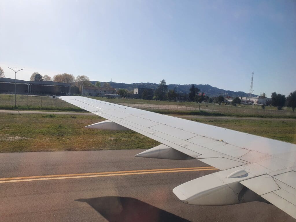 Seeing as I had checked in online and lacked any luggage to check-in, upon arriving in the terminal I did not have any particular reason to head to the check-in desks. However, fancying a paper boarding pass, I decided to join one of the very short queues and upon doing so another Albawings agent checked my vaccination documents. Once at the counter, a friendly and helpful check-in agent went through my stay in Albania, requesting the date that I would leave the country and had a quick flick through my passport before printing off my boarding pass and handing this over to me. Given the likely high amount that Albawings seems to have invested in smart uniforms for their ground crew, I was very slightly disappointed to see that this was printed on a blank boarding card as opposed to an Albawings-branded boarding pass. However, this is most definitely not something that I would imagine that many passengers complain about, and overall my interactions with two of Albawings’ Forlì-based staff were highly positive.