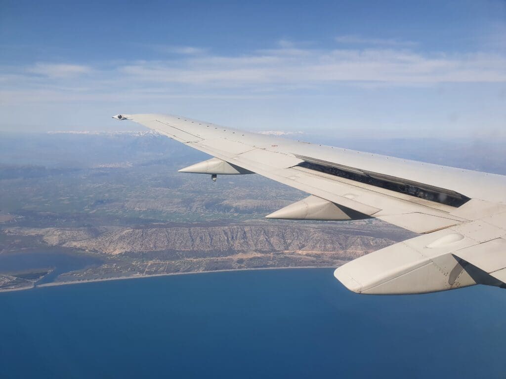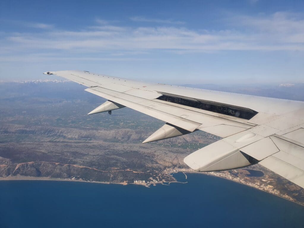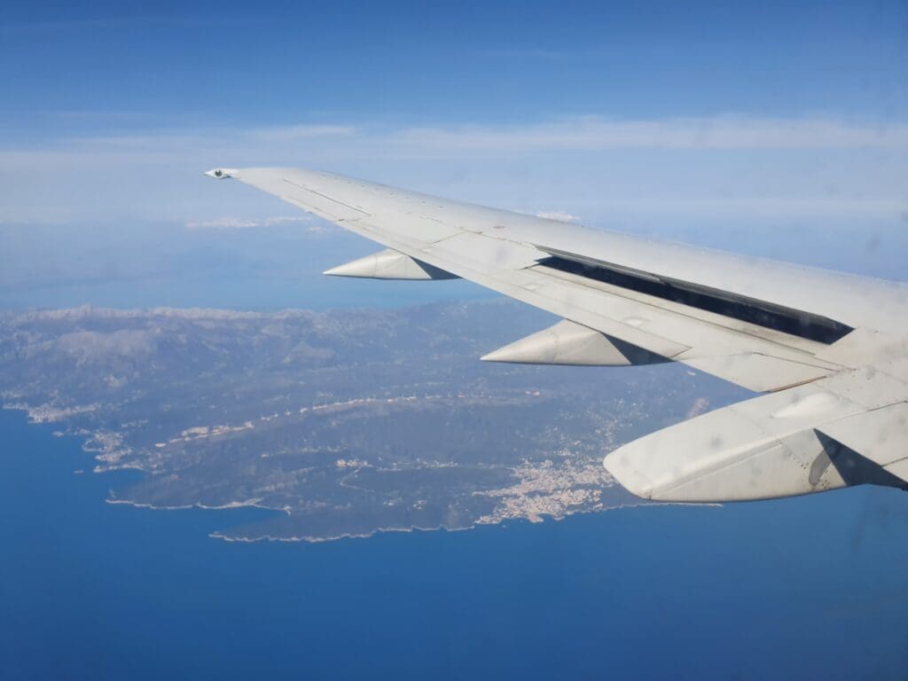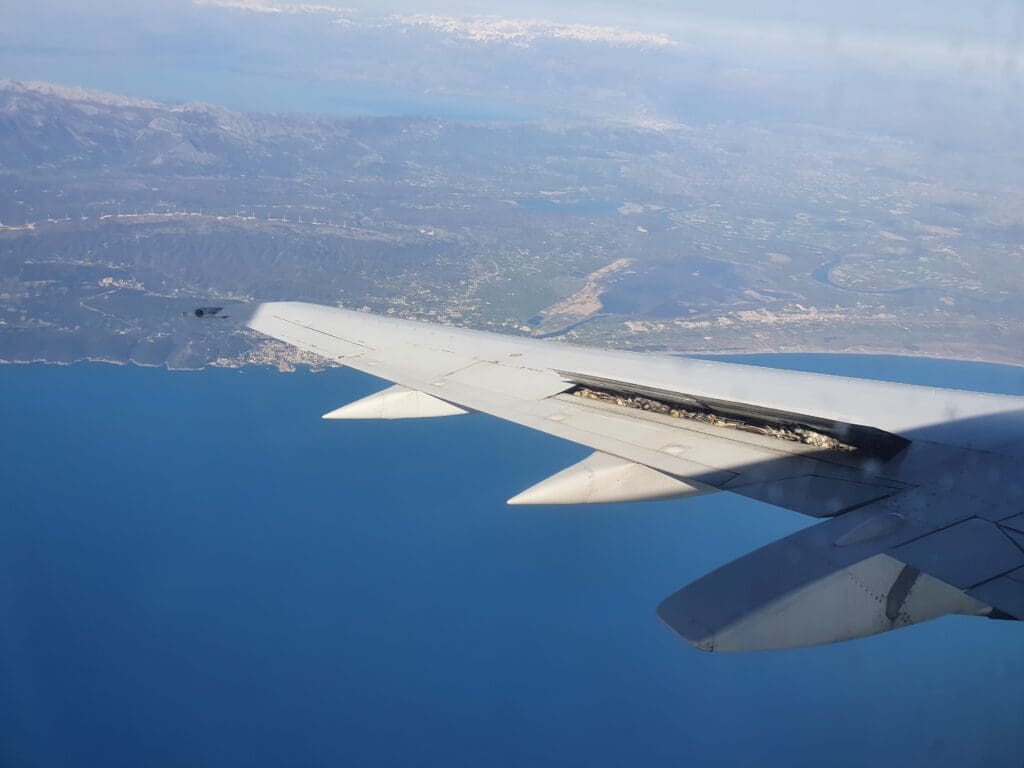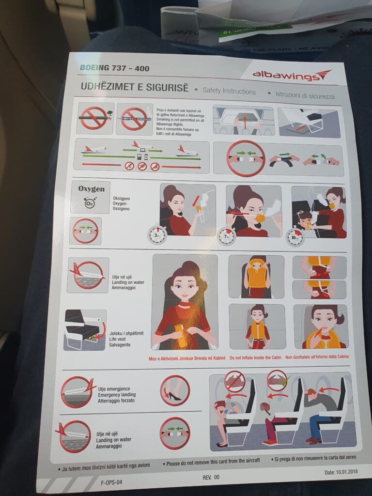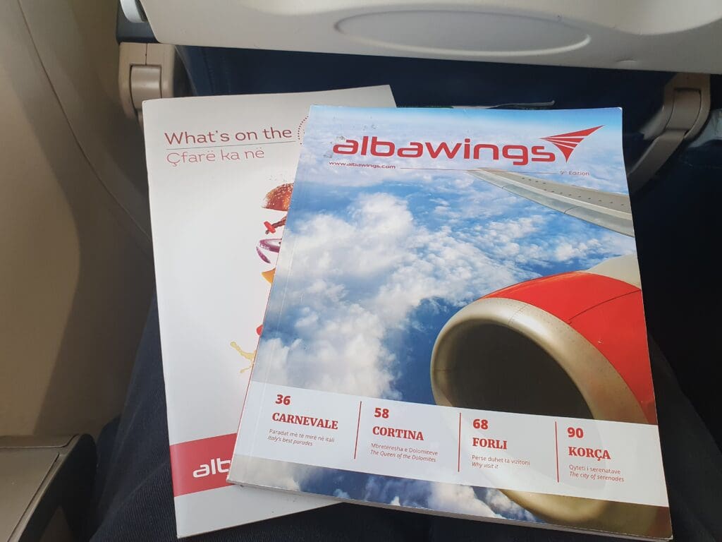 A total of thirteen minutes after the Boeing had rocketed up into the Italian skies, the aircraft left the Marche coastline behind near the city of Ancona and journeyed out over the blue waters of the Adriatic Sea, soon levelling off at 33,000 feet. Heading southeastwards, it wasn’t long before the coastline of Croatia’s Dalmatia province appeared off the Boeing’s port wingtip, with Vid, the farthest Croatian island from the mainland appearing around fifteen minutes after leaving Italy behind. Meanwhile, in the distance, the Croatian mainland could be seen and I was able to make out Split, where I had been exactly a month before this flight to sample Van Air Europe’s Let L-410. At this time the first lumps and bumps of the flight could be felt, although these were not particularly heavy and failed to warrant the reillumination of the seatbelt signs. Turning to the inflight entertainment, as mentioned the overhead televisions remained off for the entirety of the flight with the only Albawings’ inflight magazine offered to entertain passengers. Published in Albanian and English, this included articles on a range of topics including Valentine’s Day, Italy’s Carnevale, fashion and Italian ski destinations, as well as travel guides for Cortina, Forlì and Korça. Meanwhile, at the rear of the magazine, horoscopes plus pieces of information such as the airline’s fleet and destinations could be found. As is often the case, I found this to be heavily peppered with advertisements, unusually some of which seemed to be a little risqué!
