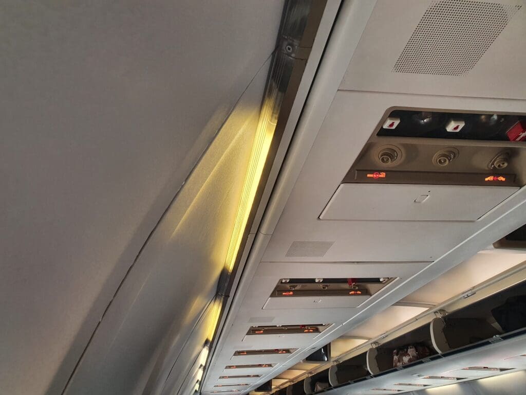 Back inside the cabin, at 1520 the seatbelt signs were extinguished as we passed through 20,000 feet. However, before this time, I did notice that several passengers had stood up to either stretch their legs, retrieve items from the overhead lockers or head to the bathrooms, with the crew doing seemingly little to reprimand them. Once the seatbelt signs had been switched off, given the short length of the flight, the crew soon got to work commencing the onboard service with one trolley rolled out from the front of the cabin and another from the rear.