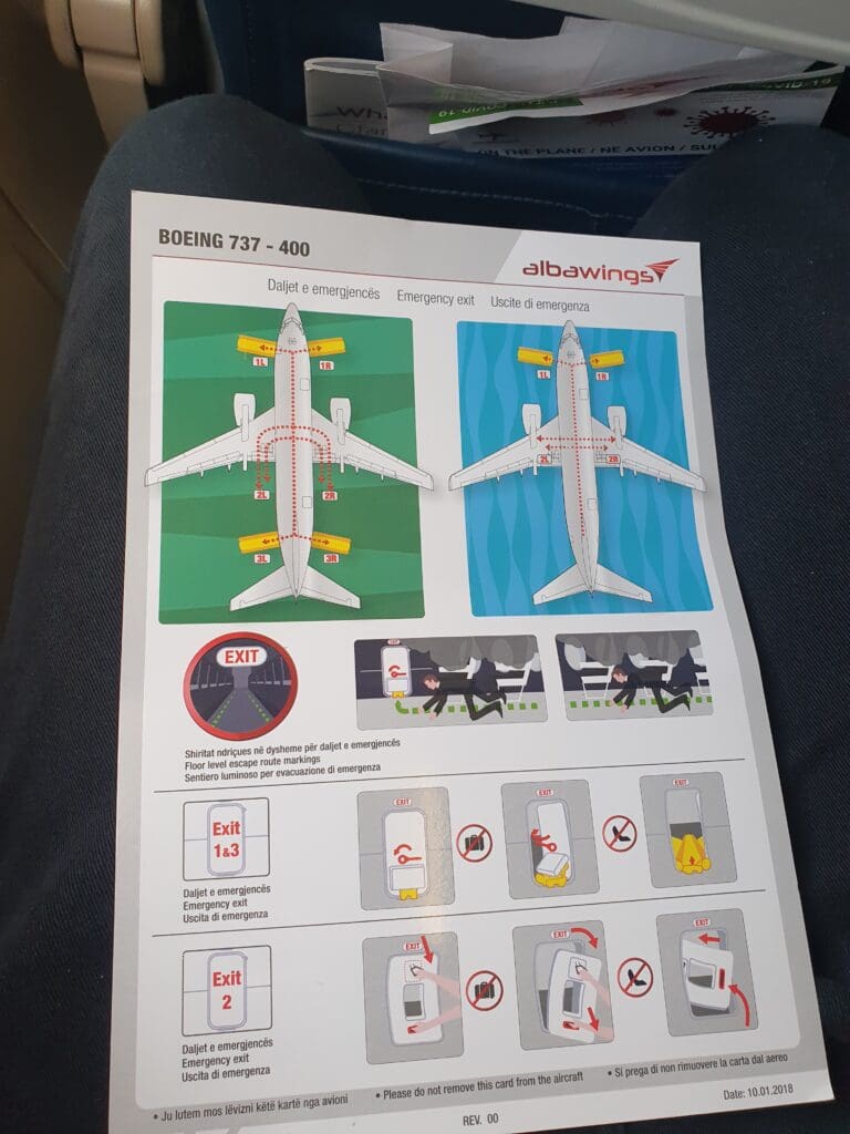 A couple of minutes or so after the aircraft had landed, the sound of screaming children in the departures hall was temporarily muffled by the noise of the Boeing’s two jet engines as the aircraft came to a halt directly outside the terminal at Stand 205. This particular aircraft took the form of ‘Zeko’s’, a Boeing 737-46J bearing the registration ZA-ALB. Assembled at Boeing’s facility in Renton with the line number 2465, this aircraft first took to the skies in April 1993, making it almost exactly 29 years old and the youngest aircraft in Albawings’ three-strong fleet although the aircraft has still enjoyed a very diverse career before its life in Albania. Boeing enthusiasts may be able to tell from the customer code that this aircraft commenced its commercial life with Air Berlin where it flew across Europe as D-ABAE. Painted in Air Berlin’s white, brown and silver colours, the aircraft continued in this role until May 1999 when it headed southeast to Greece and entered service with the country’s Macedonian Airlines as SX-BMA. The aircraft remained there until Macedonian Airlines’ operations were amalgamated into those of its parent carrier, Olympic Airlines, in early 2003, and in June 2004 the aircraft began a new life with Italian low-cost carrier Air One as EI-DGL. However this did not last long, and in 2008 the aircraft was returned to its lessor before it received the bright lime green colours of Russian low-cost giant S7 Airlines at Bournemouth Airport, and entered service with the carrier’s subsidiary Globus Airlines in December 2008 as VP-BQG. In March 2015, the aircraft was placed into storage before being delivered to Slovakian ACMI specialist Go2Sky in June of that year as OM-GTD. There, it operated charters across Europe and spent significant periods flying for Austrian carrier Niki – receiving the carrier’s basic titles, and Cape Verdean national airline, TACV. However, with Go2Sky shifting its focus to an all-Boeing 737-800 fleet, the aircraft was placed into storage in late 2018 with the Manx registration of M-ABLR. Fortunately, this did not last long, and by the end of the year, the aircraft had entered service with Albawings. In the week before my flight, the aircraft had undertaken nineteen short hops between its base in Tirana and cities across Italy – namely Ancona, Bari, Forlì, Perugia, Venice and Verona, travelling over 7,700 miles in the process.