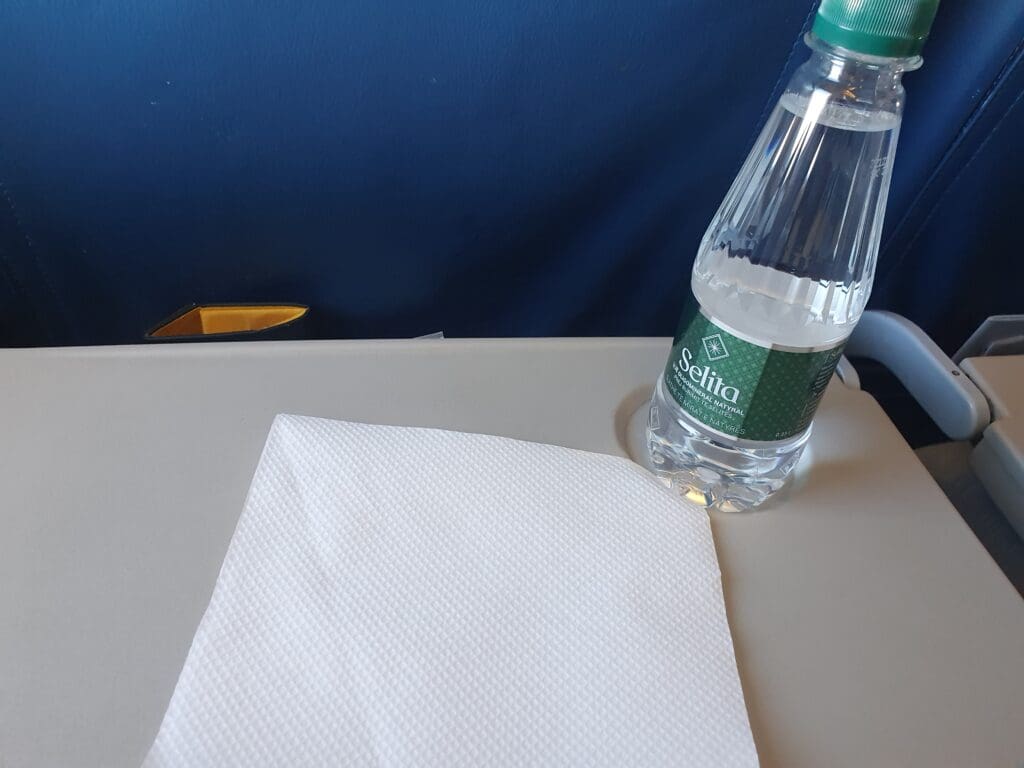 As a low-cost carrier, I was not surprised to find that Albawings fails to offer any sort of complimentary inflight offerings. Instead, a buy-on-board service is provided for those needing some inflight refreshment. Browning Albawings’ menu, the usual selection of hot and cold, hard and soft drinks are offered alongside a range of sweet and savoury snacks – with prices for individual items ranging from €1.50 or 200 Lek for a tea or instant coffee, up to €6 for spirits. As with many carriers, Albawings offers combination deals, with four of these provided – the most expensive of which was priced at €9 or 1000 Lek, allowing passengers to pair a sandwich with a Kit Kat and soft drink. Despite the short length of the flight that afternoon, there appeared to be plenty of takers for the drinks and snacks that afternoon. Whilst I did not initially intend on purchasing anything onboard, given the lack of offerings on the ground and in dire need of drink, I decided to purchase a bottle of Albanian spring water for a pricey €2. Upon reaching my row, the flight attendant that served me did seem to be a little cold and there were a few language barriers during our interaction. Whilst I had asked for a water, the crew member initially thought I had requested a tea, and then a vodka, before finally realising that I wanted a bottle of water. With payment possible in both Euros and Lek, I handed over a €5 note before being informed that they were short on change and would return later to give me €3. Sure enough, a few minutes later I received my €3 change.