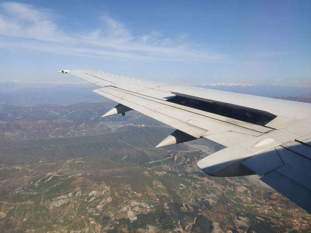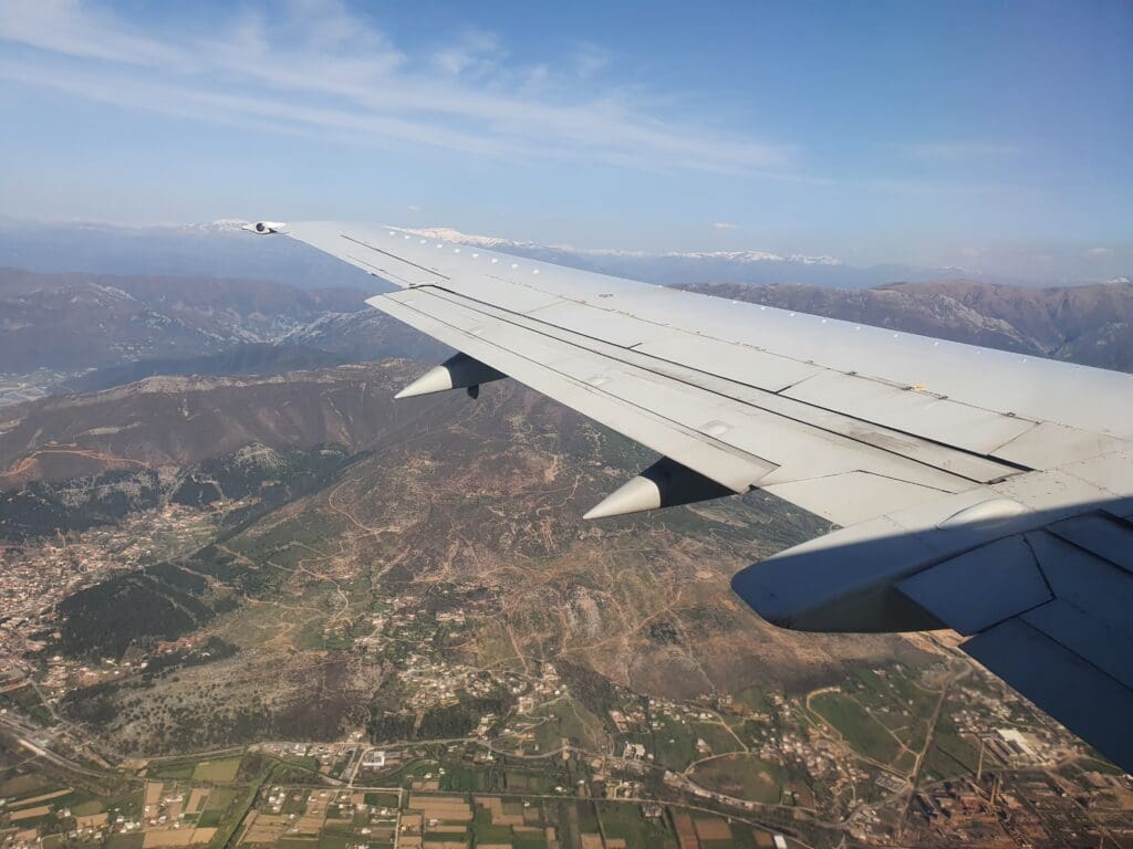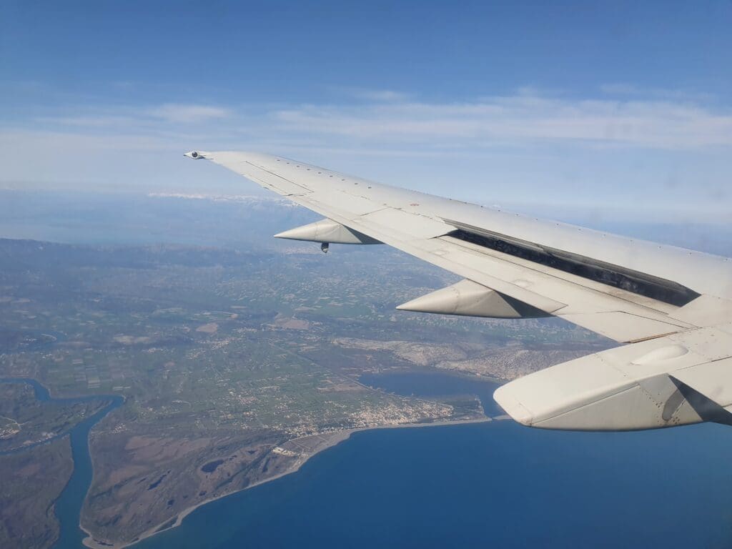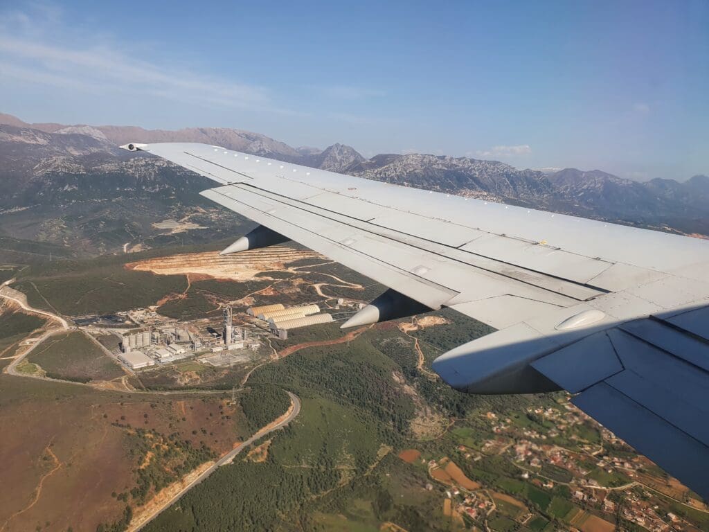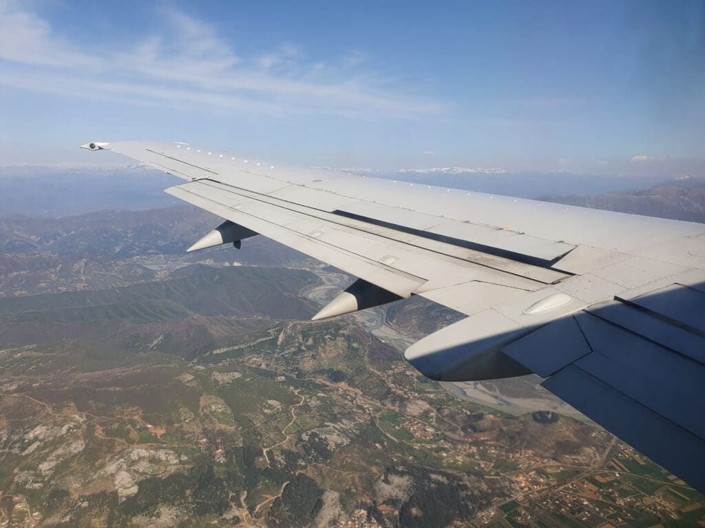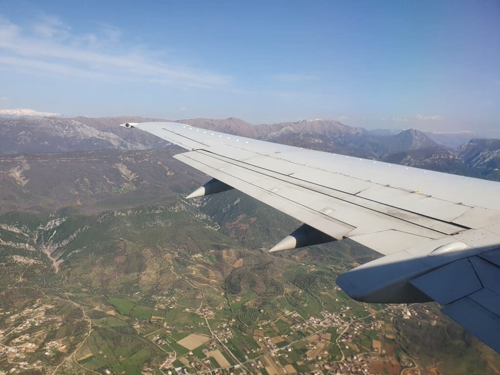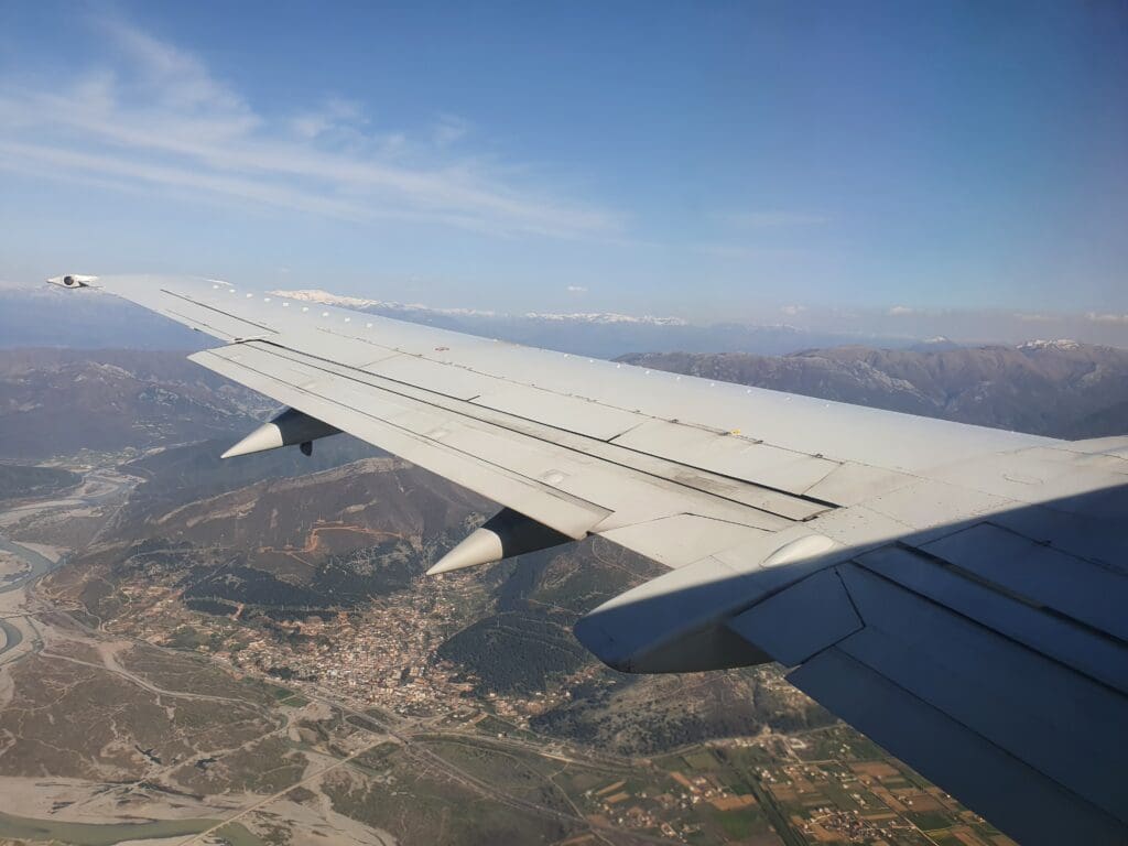After passing the Montenegrin coastal town of Ulcinj, the hills of Albania’s rocky coastline around the town of Rrjolli could be seen before the aircraft crossed the coast just to the south of the town of Shëngjin. With this town serving to be a popular holiday destination, there, a long beach could be seen stretching down the coastline. From Shëngjin the Boeing turned southwards to line itself up from an approach to Tirana Airport’s Runway 17 whilst I was treated to spectacular views of the Albanian countryside, hills and mountains as we trundled towards the capital.