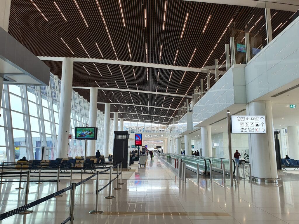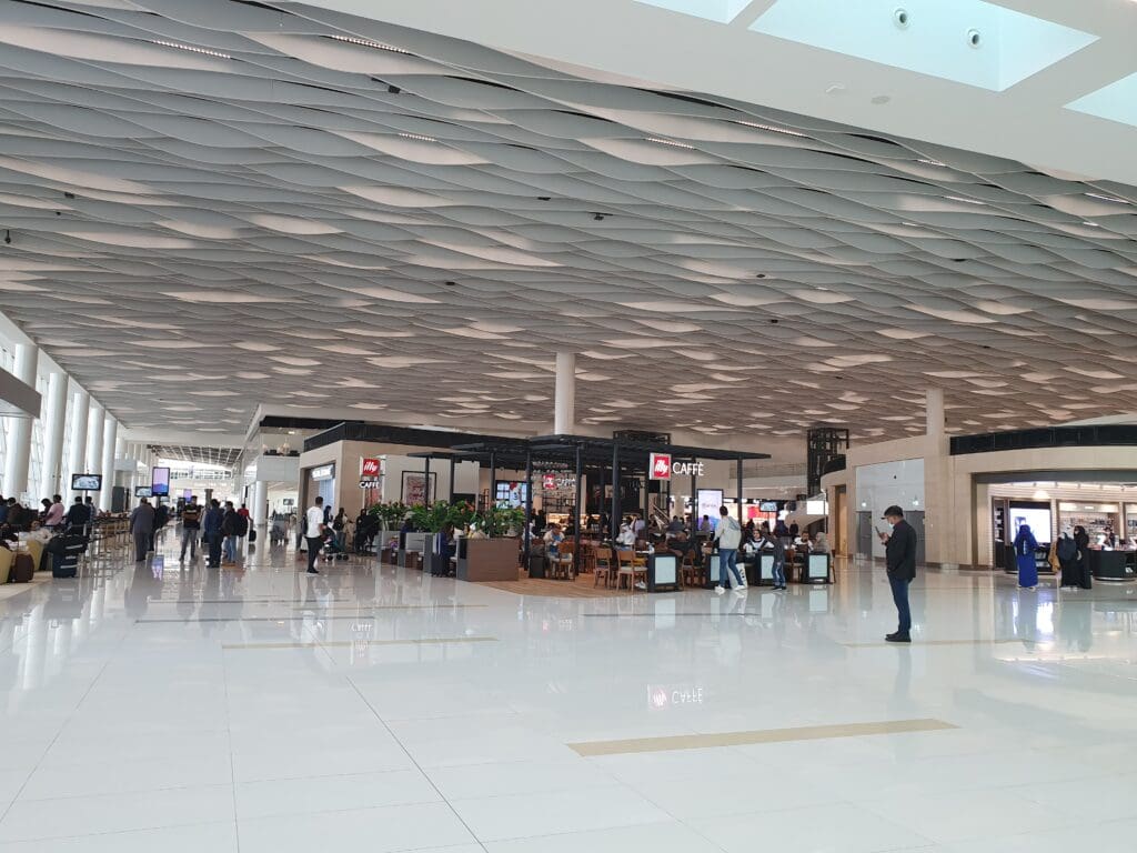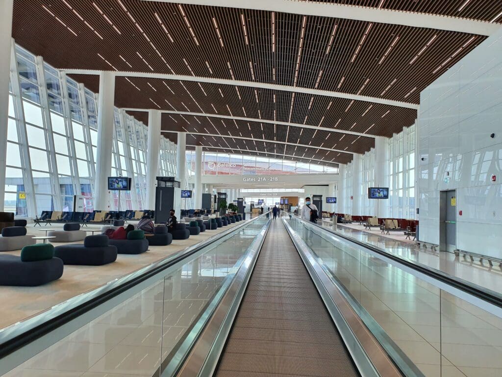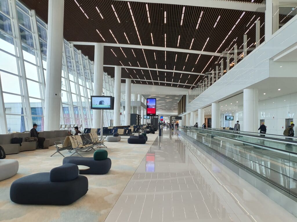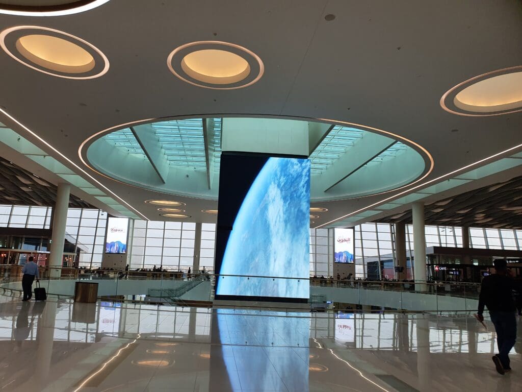 Designed to allow Gulf Air to further develop its route network and complement its status as a high-quality carrier, as well of course to provide Bahrain with a delightful transportation hub, the airport’s sole terminal opened in January 2021, almost exactly ten months before my trip. Given its age, as expected the terminal appeared to be brand new, shiny and incredibly modern. With high ceilings, bright open spaces and some very stylish elements of design, the terminal is undoubtedly one of the more architecturally memorable ones that I have had the pleasure of passing through in the past few years. In addition, rectangular in shape and running along the apron, the layout of the terminal is positively simplistic, allowing passengers to easily navigate their way through on their way to their gates. Aside from design, the terminal features all the usual facilities that you would expect at a major air terminal, such as luxury and more ‘regular’ shops, cafes and restaurants, the latter selling goods at typically airport-inflated prices. Meanwhile, a luxury airside hotel and spa, the appropriately named Gulf Hotels Group-operated Bahrain Airport Hotel is also on offer for those with enough time and money. Of perhaps more interest to aviation enthusiasts are the large floor-to-ceiling windows which offer good vistas of the airport’s runway, most gates and the stands to the north of the runway. Finally, all will likely appreciate the fact that seating in all shapes and sizes, ranging from comfortable sofas and recliners to stools was on offer throughout the terminal, with many seats featuring built-in plug sockets and USB-A ports. My only slight complaint about the terminal was that passengers reliant on the airport-provided wifi are only offered a complimentary hour whilst connected to this, with longer periods available for a fee. Whilst this worked well for the first hour, these days paid wifi networks at airports are becoming increasingly rare.