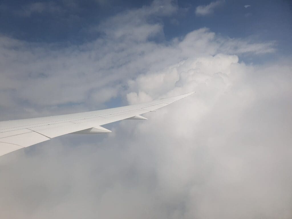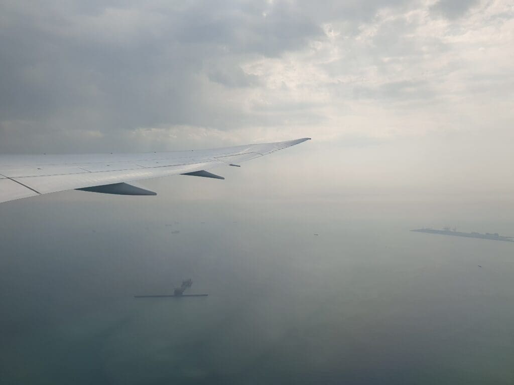After coming to a halt on Runway 12L, at 1101 the aircraft’s two Rolls-Royce engines spooled up and the Dreamliner performed a long and gentle takeoff roll before eventually rising into the Bahraini skies. Almost immediately after leaving the ground, a good view of the small collection of business jets and two vintage Cobham Falcon 20s could be seen, followed by the skyscrapers of Manama and the suburbs that surround the airport. After leaving the airport behind, views of Bahrain were soon replaced by the blue waters of the Persian Gulf before the aircraft climbed into the clouds.