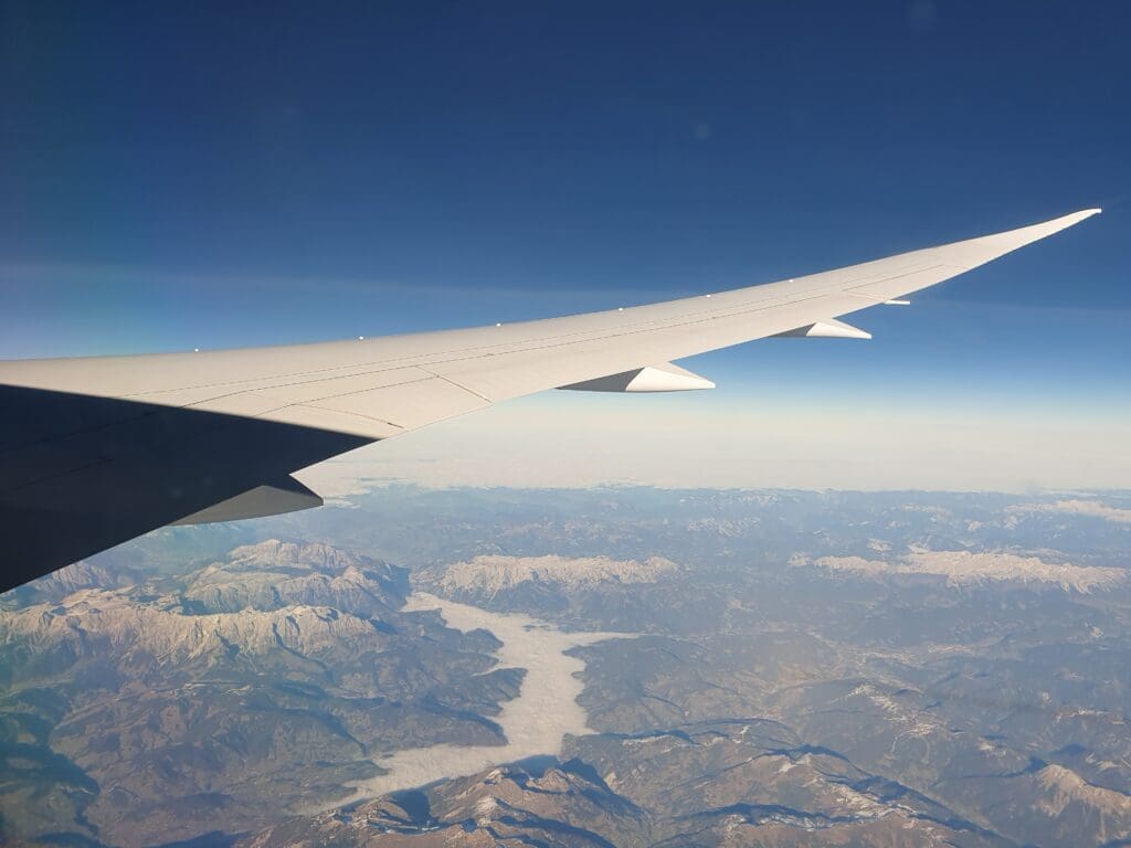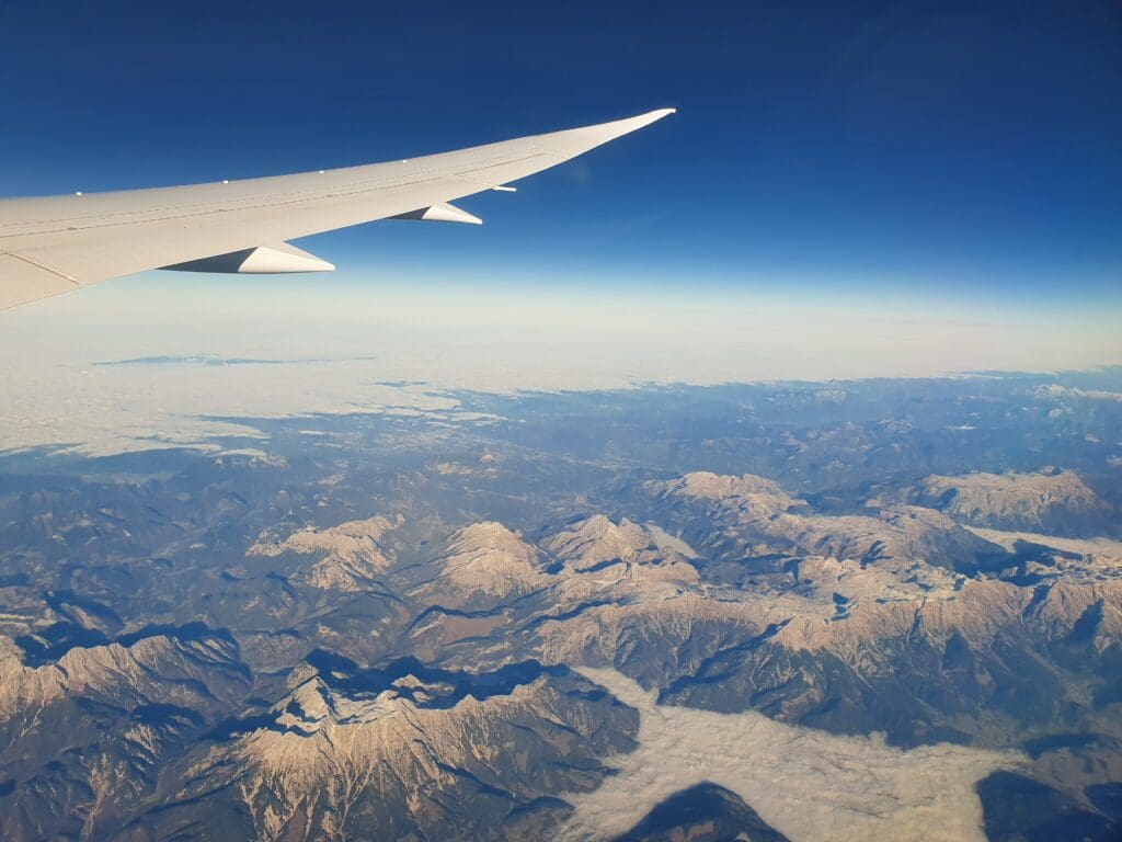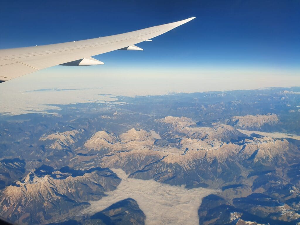 From Bosnia and Herzegovina, the aircraft continued to trundle northwest travelling at an airspeed of between 450 and 460 knots. That day, the flight’s route took the aircraft across Croatia, crossing almost directly over the country’s capital, Zagreb, before zipping over Slovenia and making its way into Austrian airspace heralding the final portion of the flight. Thankfully, by the time the aircraft reached Austria, the clouds below had parted once again and the landscape below soon rose up, transforming from hills to the snow-capped rocky peaks of Carinthia and Styria. As the aircraft continued its crossing of the alpine country, these grew further into the impressive rocky jagged mountains of the Central Eastern Alps. These sank slightly as the Dreamliner cruised towards the German border at which point thick white clouds rolled in below and ensured that nothing could be seen of Europe below until the aircraft approached Heathrow.
