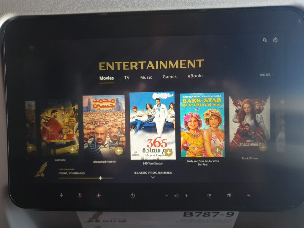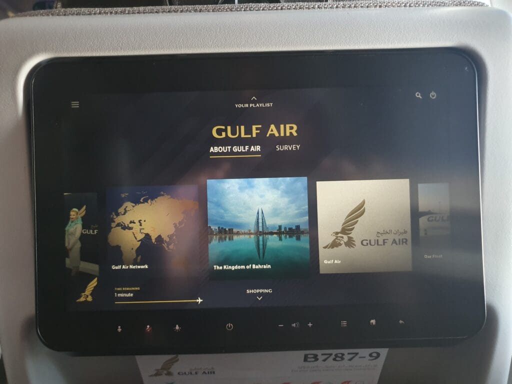 Returning to the route, the Dreamliner passed to the west of the cities of Kirkuk, Erbil and Mosul before making its way into Turkish airspace. Unfortunately, at this time the clouds beneath the aircraft ensured that nothing could be seen of the mountainous landscapes of southeast Turkey so I decided to have a very quick explore of the aircraft’s inflight entertainment system. Unsurprisingly this is identical in layout and content to the inflight entertainment systems onboard Gulf Air’s Airbus A320neo and Airbus A321neo aircraft. Whilst I give a full review of this in my Frankfurt to Bahrain trip report, to summarise this, the inflight entertainment system is well laid out, modern, easy to use and stylish, with a good number of films, television programmes and music playlists. Meanwhile, the moving map offers plenty of different options for those looking to track the flight’s progress whilst I should also mention that the system was quick to load and did not freeze for the entirety of the flight.