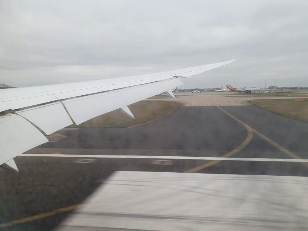 After vacating the runway, an automated welcome announcement was played advising passengers to remain seated before the Cabin Services Manager welcomed all passengers to London. As the aircraft made its way over to Terminal 2 where it pulled in at stand 247 around ten minutes after touching down. Once the engines spooled down, as if often the case many stood up and retrieved their bags however there was little movement inside the cabin, with disembarkation taking some time to commence. Eventually, I made my way through the aisle and the messy forward Economy cabin, thanking several crew members along the way before stepping onto a chilly and battered-looking jetway. From our arrival gate, a long walk over to the terminal’s immigration hall was required, however, once there, I was able to pass through an e-gate with minimal queuing before heading down the escalators to the terminal’s large baggage collection hall. After a ten-minute wait for my small suitcase to appear, I collected this and walked through customs before heading over to Heathrow Central railway station for my journey to Ealing, ending my experience with Gulf Air.