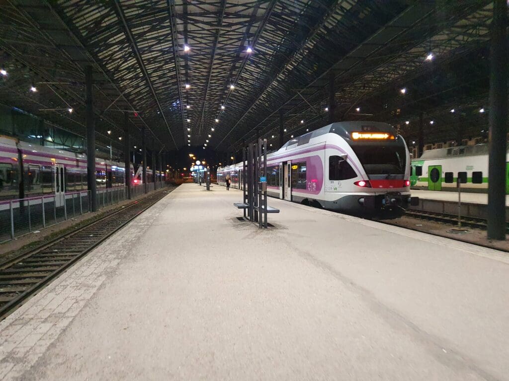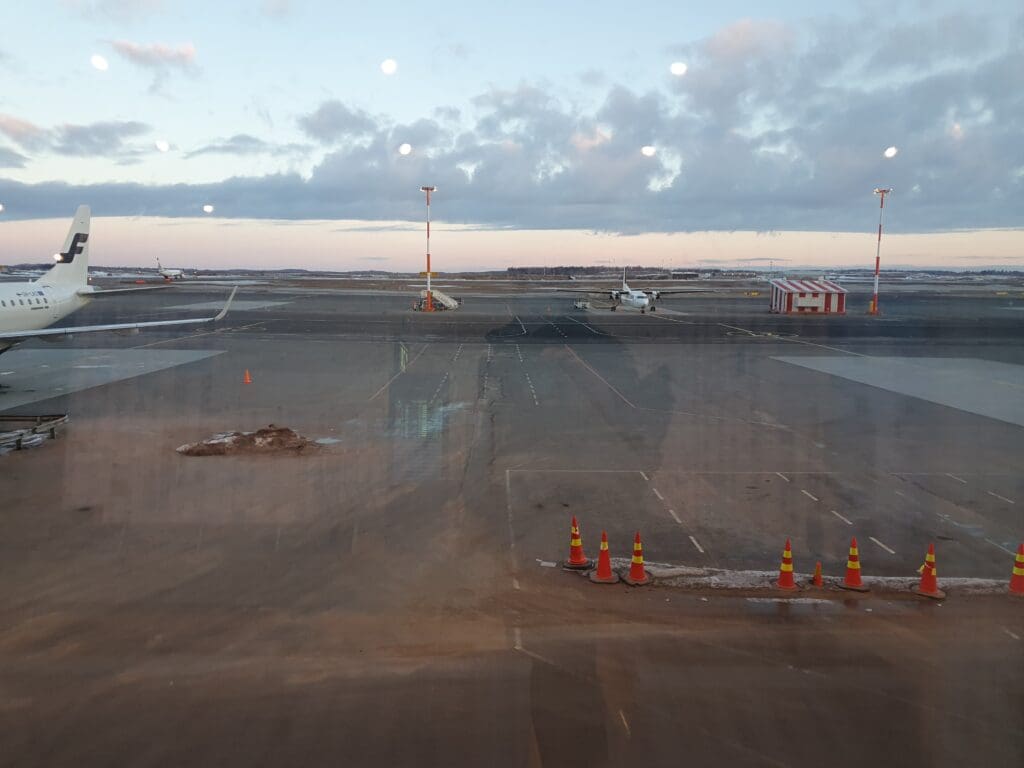 With the station doors not opening to passengers until 0500, a short wait in the morning cold was required before I could head through and onto the waiting train. However, unfortunately, it appeared that I had been waiting at the wrong entrance, with this not opening until 0505, and by the time I entered, the airport-bound train could be seen pulling away. Fortunately, with another airport service departing twelve minutes later, this was not too much of a disaster and I made my way straight over to this train and boarded with plenty of time to go until its departure. As commuter trains go, I found Helsinki’s Class Sm5 electric multiple units, the trains that operate the city’s commuter services to be very good – with these being clean, offering plenty of comfortable seating and coming complete with plug sockets. Pulling out of Helsinki Central Station right on time, the train made plenty of stops as it headed north through the suburbs of the Finnish capital, before finally reaching the airport at about 0550. By this time, the late-night revellers had mostly disembarked and the train was instead full of airport staff and suitcase-wielding passengers at the start of their journeys.