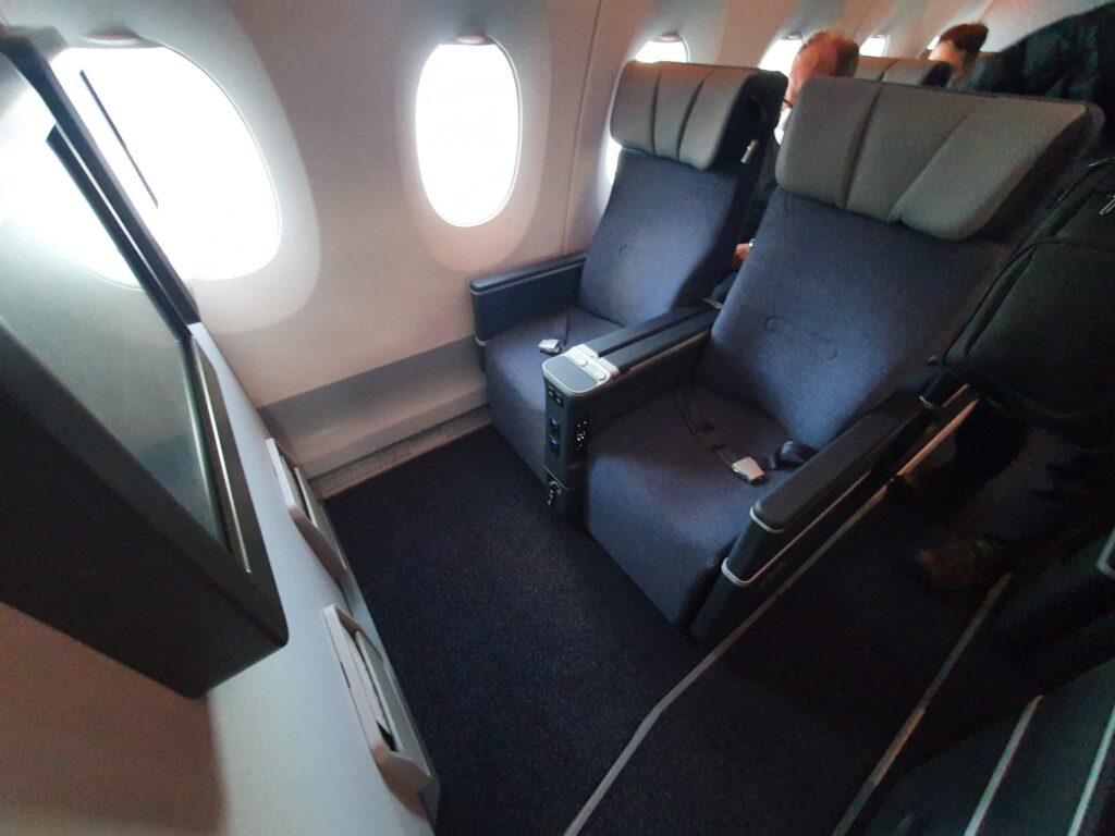 As I trundled down the aircraft to the rear Economy cabin, I first passed through the smaller of the aircraft’s two Business Class cabins. Seeing as it had only been introduced less than a couple of months before my flight, I was surprised to find that this particular Airbus featured Finnair’s new dark blue fabric-covered Business Class seats. Taking the form of Collins Aerospace’s AirLounge seats, have received a fair amount of attention owing to the controversial fact that they do not recline. Heading through this, next up was Finnair’s premium economy product, their Economy Comfort cabin. This featured 24 comfortable-looking Haeco Vector Premium seats arranged in a 2-4-2 configuration, each sporting a dark blue fabric and topped with a large (faux?) leather headrest. As I trundled down the aircraft, I received several friendly greetings in English and Finnish, which combined with my friendly welcome left me with a good first impression of the crew.