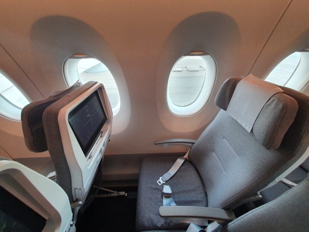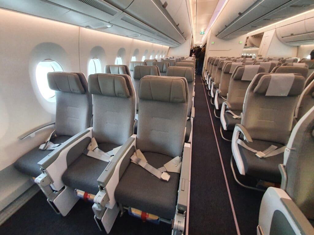 As time passed, the gate waiting area soon filled up and at 0730, those priority passengers in Group 1 were invited to head down to the aircraft. Five minutes later, this was followed by an announcement for all other passengers at which point I made my way towards the waiting aircraft. That morning boarding took place via a single jetbridge, and as is often the case with the Airbus A350 and similarly sized aircraft, this was connected to the L2 door. Following this towards the waiting jet, taking my time to admire the mammoth-sized Rolls-Royce Trent XWB engines, I soon arrived at the cabin door. As soon as I stepped into the galley, I received a friendly ‘huomenta’ from one of two flight attendants standing there welcoming passengers onboard who checked my boarding pass before advising me in Finnish to head right down the second aisle.