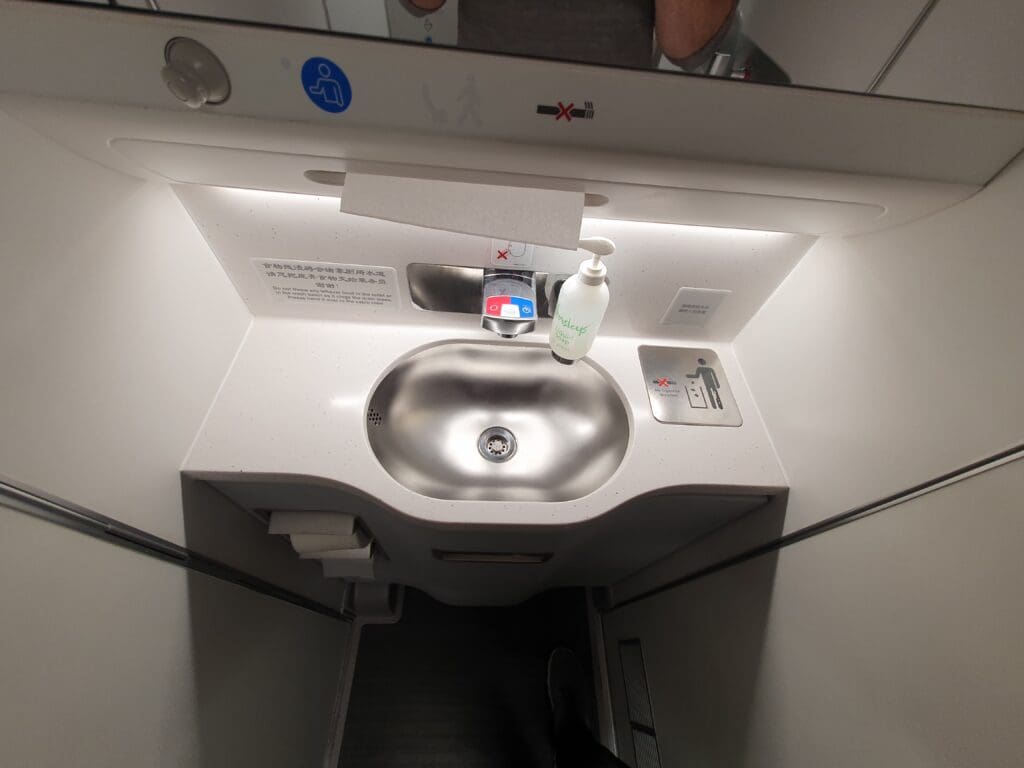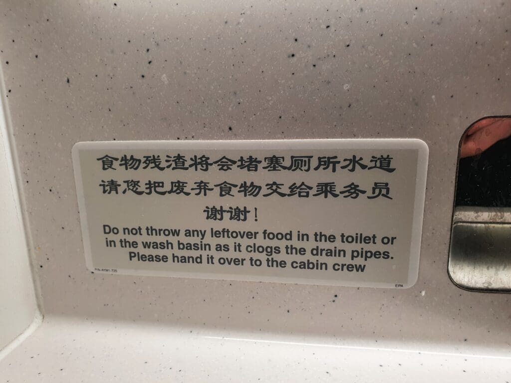Once I had browsed the delights of the inflight entertainment system, with little to see outside, I decided to make a pre-arrival trip to one of the lavatories at the rear of the aircraft. At that time, with no queue, I was able to walk straight into one of these and found it to be modern, clean and spacious – however, the latter was perhaps assisted by the fact that my previous flights had all taken place on small airliners with minuscule bathrooms. Interestingly, the signs in this were not in Finnish and English as one may expect onboard Finnair, but instead in English and Chinese, with some signs appearing to be in Chinese only. One of the more unusual signs in this was a warning not to put any food items down the toilet and instead hand these to the crew!