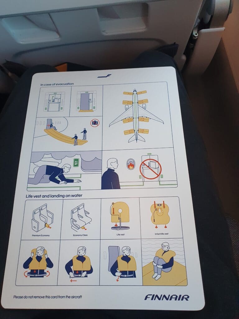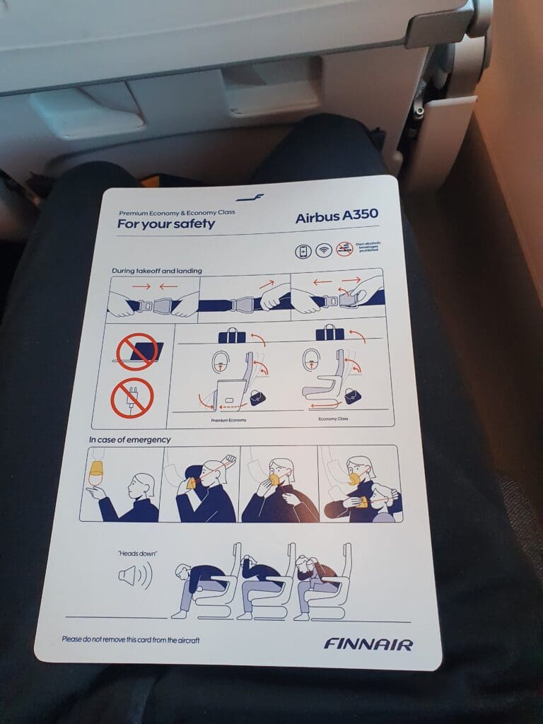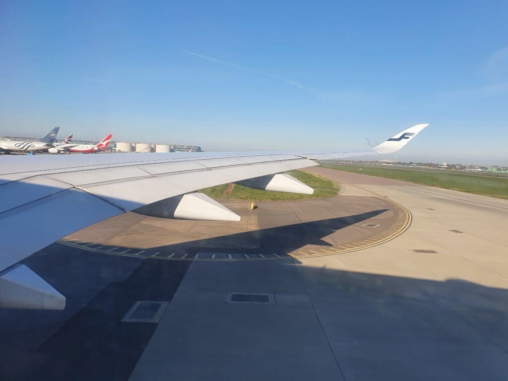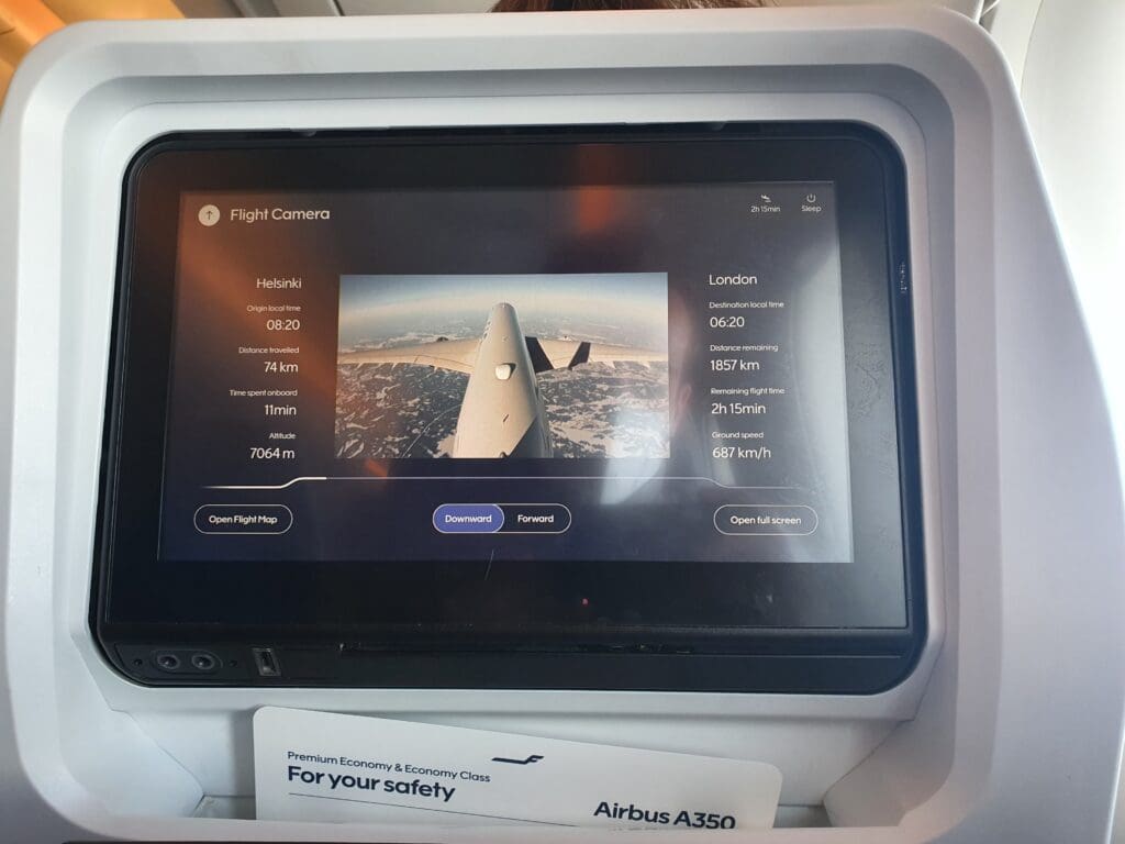 That morning, the aircraft made a very punctual pushback from its stand, with this occurring at 0754 during which the left-hand Rolls-Royce Trent XWB engine hummed and whirred into life, ready to carry us all across to London. Inside the cabin, the inflight entertainment system became temporarily inoperable as Finnair’s safety video was broadcast, with the crew standing in the aisles ready to point out the Airbus’ exits. Whilst recognising the fact that many Finnish people speak a very good level of English, I was a little surprised to see that this video was played in English only with English subtitles.