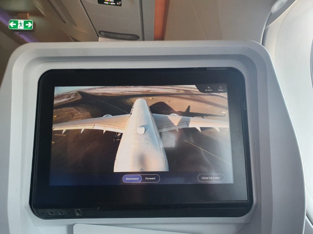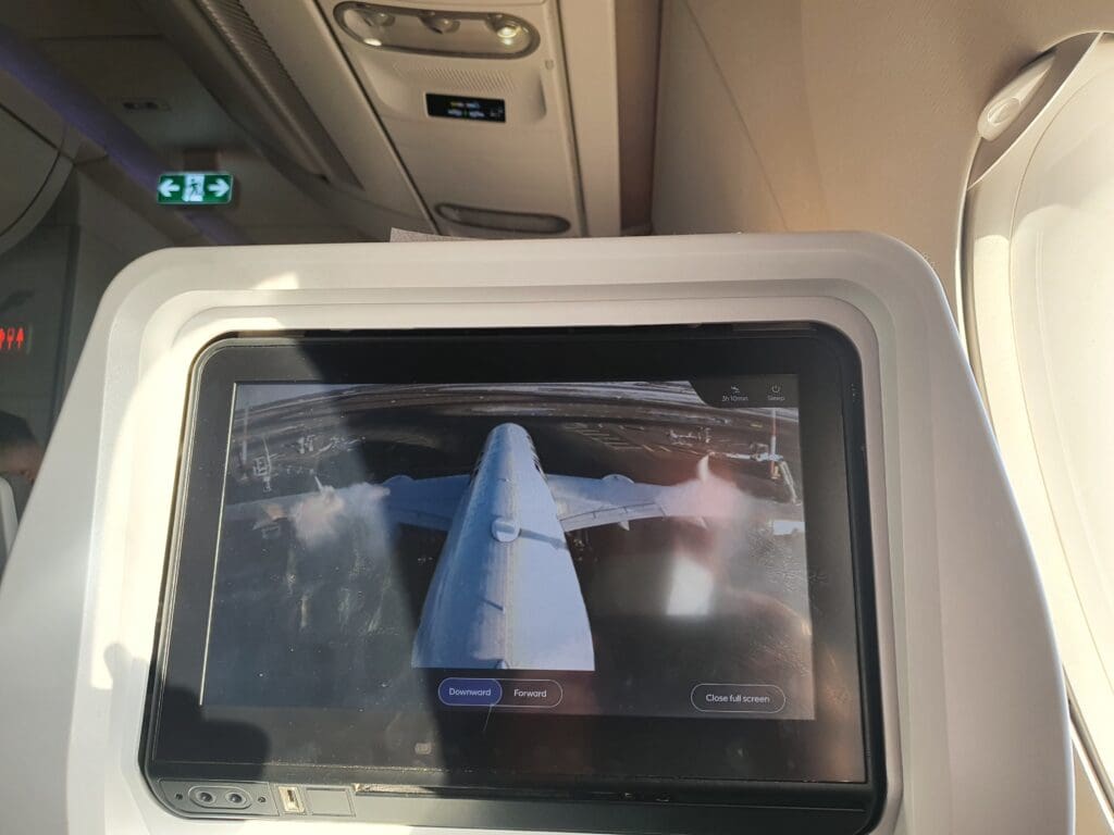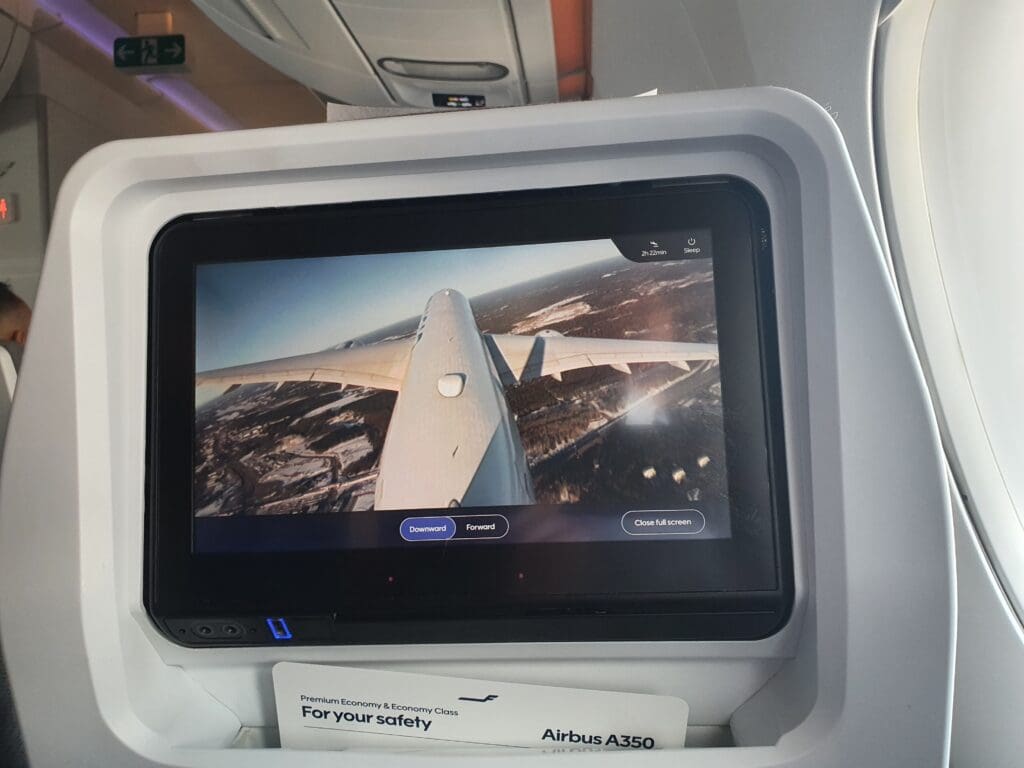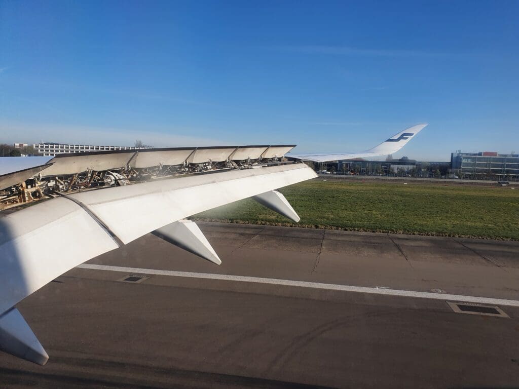 That morning, the aircraft made a very punctual pushback from its stand, with this occurring at 0754 during which the left-hand Rolls-Royce Trent XWB engine hummed and whirred into life, ready to carry us all across to London. Inside the cabin, the inflight entertainment system became temporarily inoperable as Finnair’s safety video was broadcast, with the crew standing in the aisles ready to point out the Airbus’ exits. Whilst recognising the fact that many Finnish people speak a very good level of English, I was a little surprised to see that this video was played in English only with English subtitles.