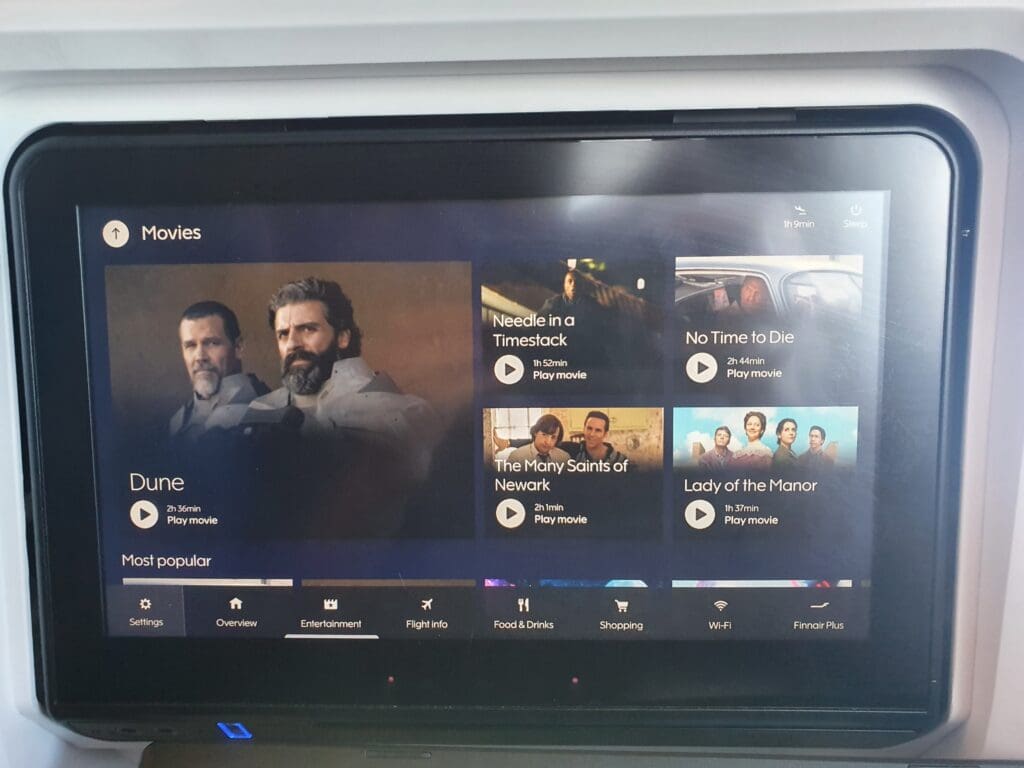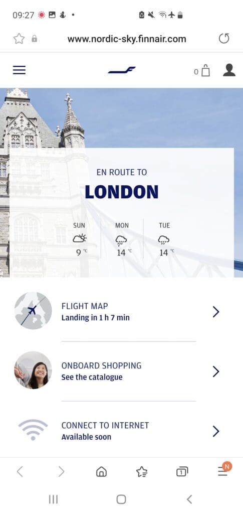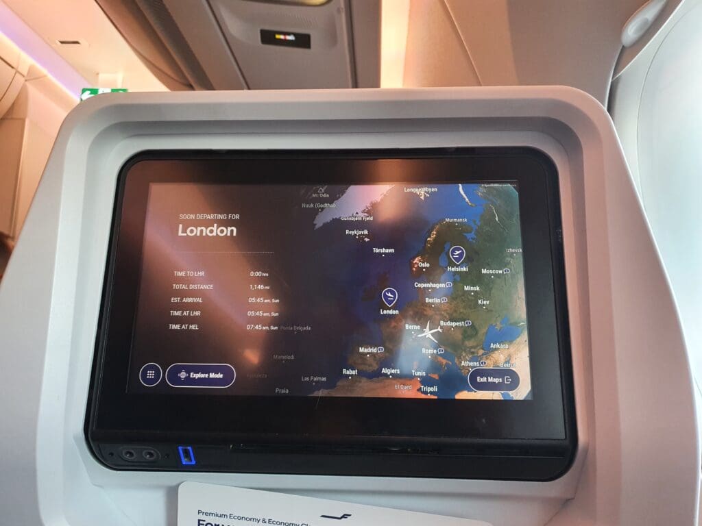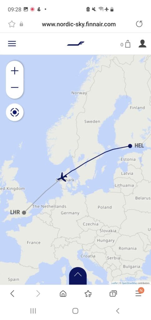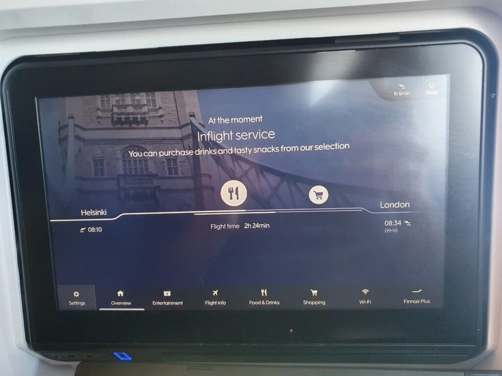 With little to see outside as we journeyed across the sea, I decided to turn to the inflight entertainment. As with many airlines, Finnair has halted the printing of its Blue Wings inflight magazine, with the articles from this having migrated to the digital world. However, onboard their Airbus A330 and Airbus A350 aircraft, passengers can keep themselves occupied by what I found to be a rather top-notch inflight entertainment system. As I explored through the various pages, I found this to offer pretty much everything you could want, including a good moving map page powered by Panasonic Avionics’ new ARC map system, a tail-mounted camera, plenty of videos and information regarding the airline and a buy-on-board menu. However most passengers will likely be more interested in the selection of films, music and television programmes offered, and I am pleased to report that this was very expansive, with all sorts of content from across the world offered. Meanwhile, the screen itself was high quality and very responsive to touch. For those needing to connect to the outside world, Nordic Sky wifi was offered onboard, with various packages sold to allow passengers to surf the internet and send messages during the flight. Although the internet function of this was not offered on the flight to London that morning. However, this did allow me to track the flight’s progress, use the Finnair website and browse a wide selection of magazines and newspapers from China, Finland, Germany, India, Japan, Korea, Singapore, Thailand, the UK and the US.