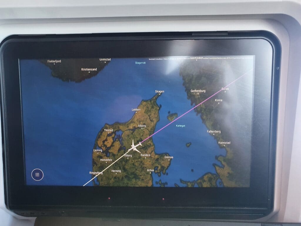 As I sipped on the blueberry juice, the aircraft was crossing over the Swedish capital, although I was on the wrong side of the aircraft for any views of this and instead spotted the town of Sollentuna which sits to the north of Stockholm Arlanda Airport. This was then followed by views of Sweden’s third largest freshwater lake, Mälaren before clouds rolled in and blocked views as we cruised southwest across the southern portion of the country. However, these did part as we neared the end of the twenty-minute crossing of the country, allowing for good views of Sweden’s second-largest city, Gothenburg, located on the country’s southwestern coastline.