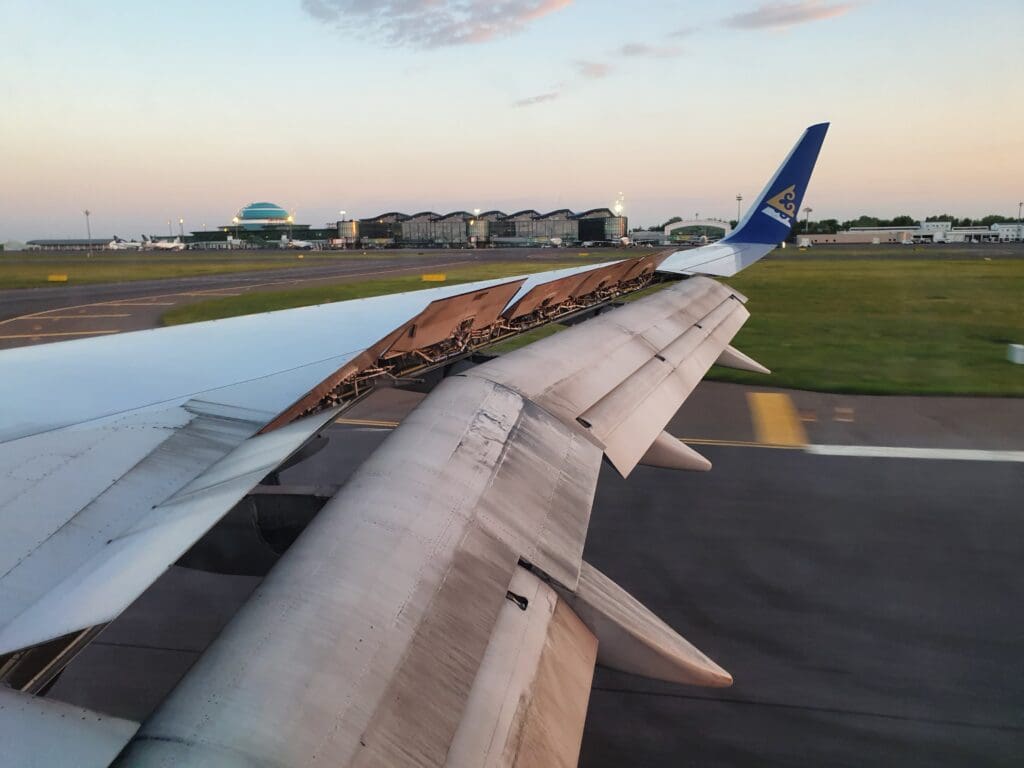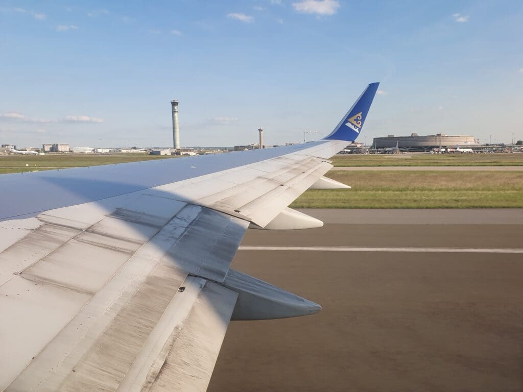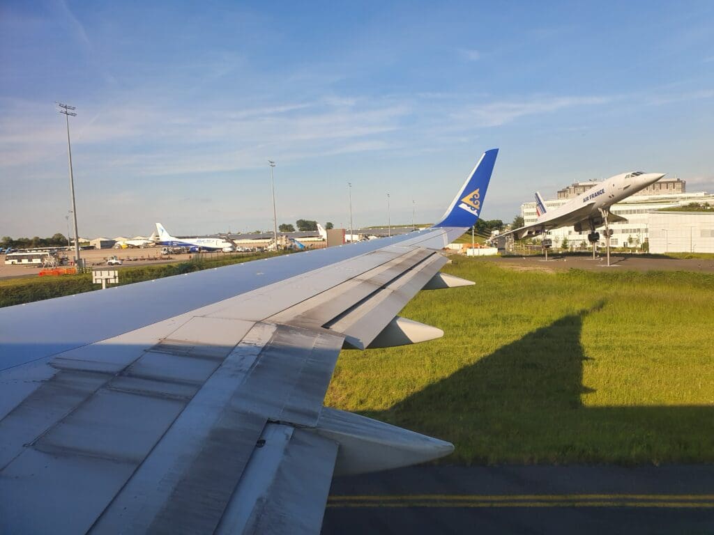 As the safety video was underway, the aircraft commenced its pushback before coming to a halt. At this point, the Boeing 757’s two large Rolls-Royce RB211-535E4 engines powered, with this process being slightly quieter than I had initially expected. At 1928, the Boeing propelled itself forward and began its trek to Runway 09R. Leaving the terminal complex behind, the aircraft soon passed over a road and made its way towards Paris CDG’s Air France Concorde. As we passed this world famous supersonic jet, the aircraft seemed to slow down significantly before speeding up again, perhaps allowing the pilots time to admire the aircraft! From there, the aircraft passed Terminal 3 where a trio of narrowbodies could be spotted. These consisted of a Vueling Airbus A320, a Blue Air Boeing 737-500 and a Tunisair Boeing 737-600, before the aircraft turned left and headed over the A1 motorway that connects Paris with the northern French city of Lille.
