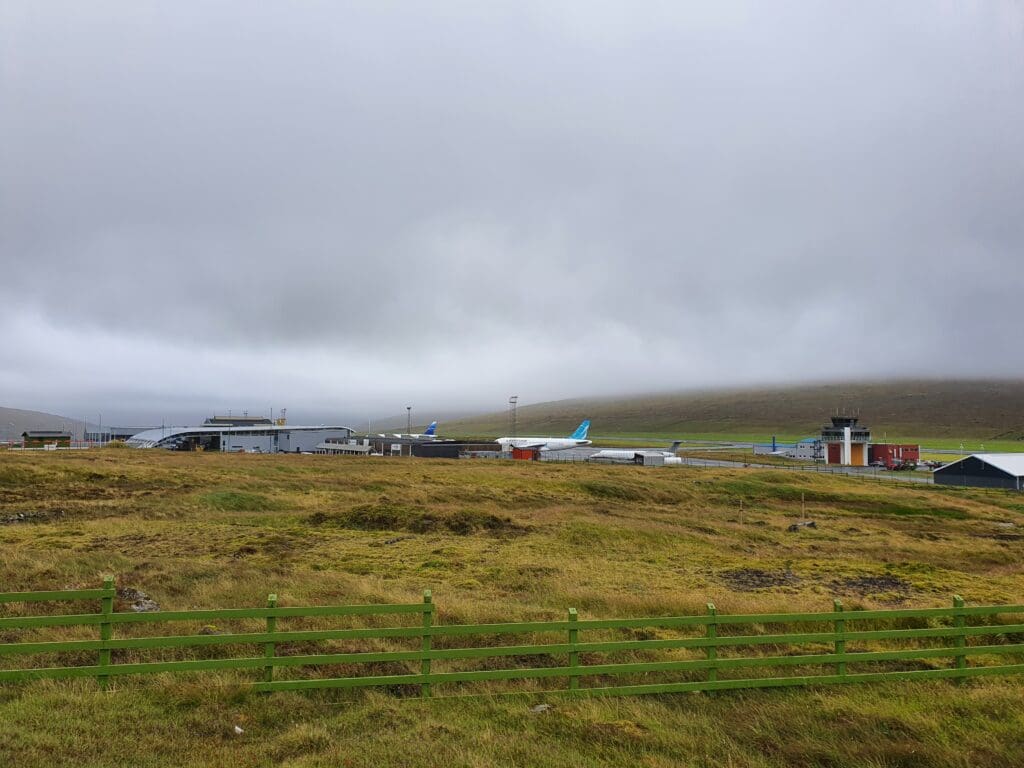 By the time I left the accommodation, the weather had thankfully cleared up a little and as journeys to airports go, this one was particularly scenic. As I approached the airport, the odd remaining British building from the Faroes’ Second World War occupation could be seen, as could the airport’s ramp. At that time, a small collection of aircraft could be seen – a Brazilian Banco Daycoval Embraer Legacy 650 and a stored Lattitude Hub livered Airbus A319, both of which I had spotted the previous day, as well as an Atlantic Airways Airbus A320neo. After walking along the backstreets near the airport’s perimeter fence, I trundled along the main road for the last couple of minutes of my journey before turning right and making my way down the airport’s driveway.