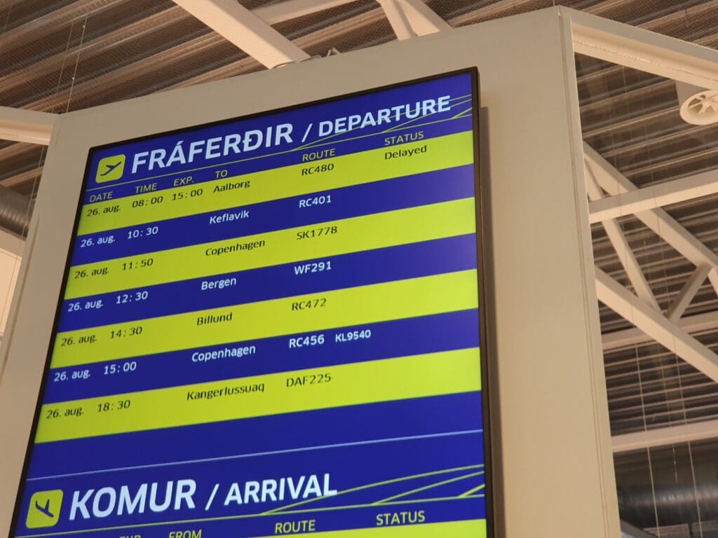 Inside, I found Vágar Airport to be modern and fairly clean, however, it is fair to say that the terminal is compact and most certainly not designed for any sort of long wait in mind. There, facilities were limited to a few check-in counters, a tourist information desk and a car hire counter. On the far side of the landside area, floor-to-ceiling windows offer a good view of the action outside on the ramp where tables, stools, chairs and plug sockets can be seen next to a closed café – with this replaced by a single hot drinks machine. Glancing at the terminal’s departure boards, I noticed that Atlantic Airways’ helicopter services were not listed on these, although interestingly a Royal Danish Air Force flight arriving from Aalborg and heading to Kangerlussuaq that evening could be seen on these.