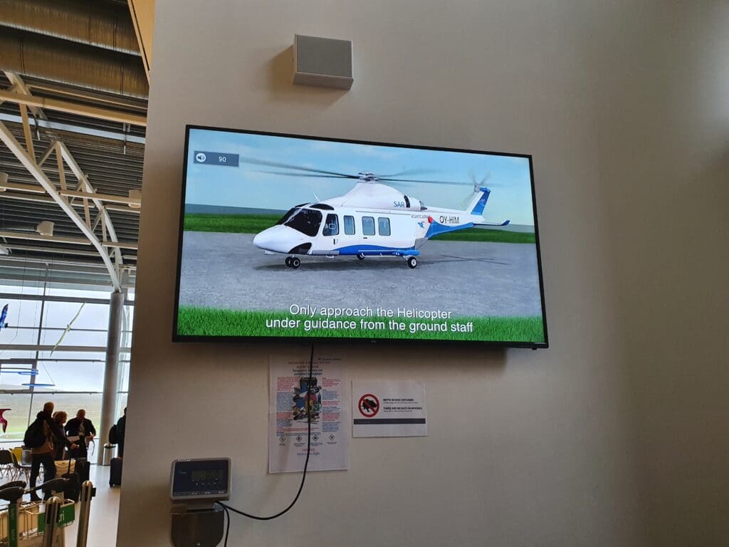 Following a quick toilet stop, I made my way over to the helicopter passenger rendezvous point, arriving there as instructed thirty minutes before departure. At that time, a cluster of passengers could be seen waiting and a short time later a ramp agent appeared requesting those bound for Klaksvík to make themselves known. Following them to the Atlantic Airways counter, a label was affixed to my backpack before I was free to return to Atlantic Airways’ AW139 safety video which had begun being shown on the large flatscreen television near the counter. With plenty of instructions to go over given the non-standard nature of helicopter operations, this video seemed to be longer than most safety videos and some of my fellow passengers appeared to watch this with total concentration whilst others appeared not to take notice.