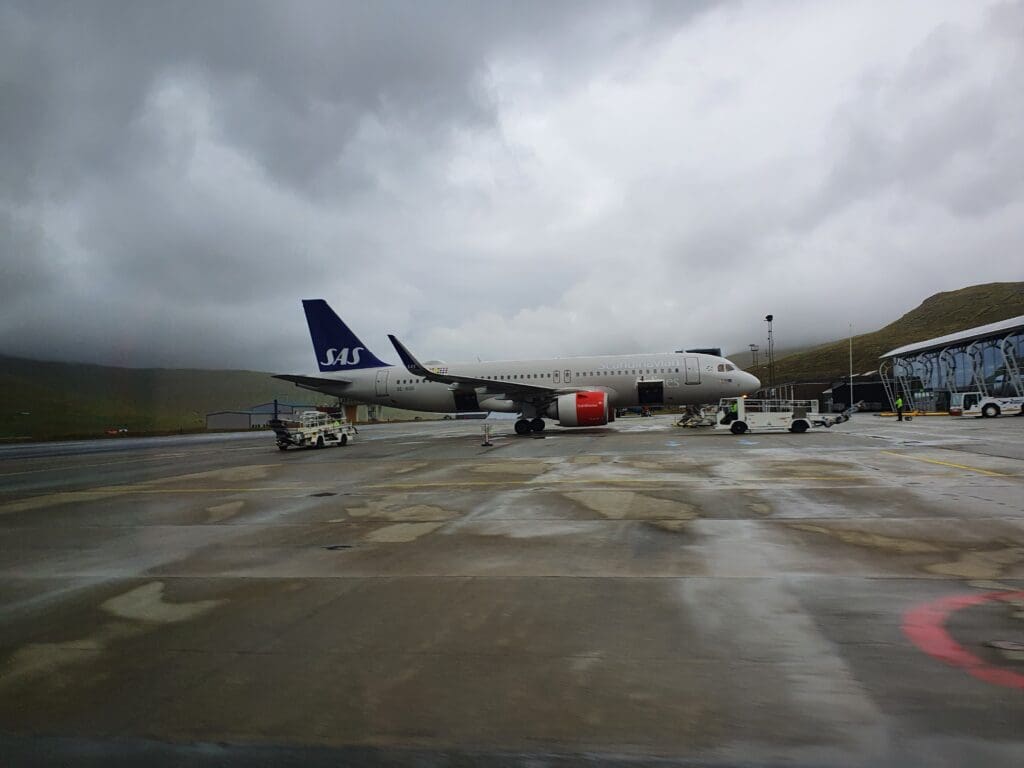 After the safety video had reached its end, at 1055 passengers were escorted out to the Atlantic Airways branded Mercedes Sprinter minibus waiting outside. As I boarded this, the AW139 could be seen choppering overhead following its short flight from Mykines. After taking my seat, it didn’t take too long for all eleven passengers to board the minibus at which point the door was closed and the journey over to the helicopter commenced. Focusing on my fellow flyers, it seemed that most of these were like me, tourists from abroad, armed with cameras ready to snap away at the passing landscape below. Once away from the terminal, the bus journeyed around the edge of the landside car park before passing through a gate and entering the ramp. By this time, a Swedish registered Scandinavian Airlines Airbus A320neo had arrived by Copenhagen, and after passing Atlantic Airways’ other helicopter, the minibus pulled up to our AW139 just as this arrived at its stand.