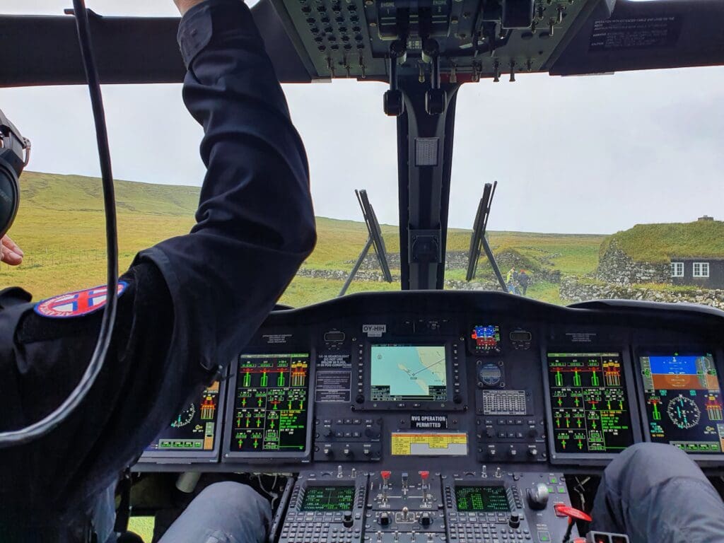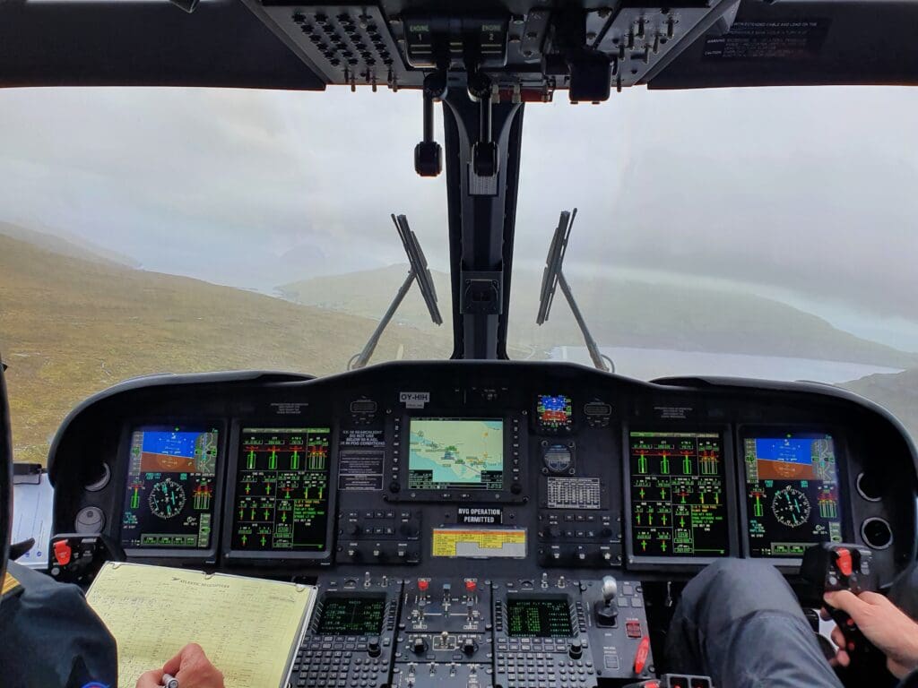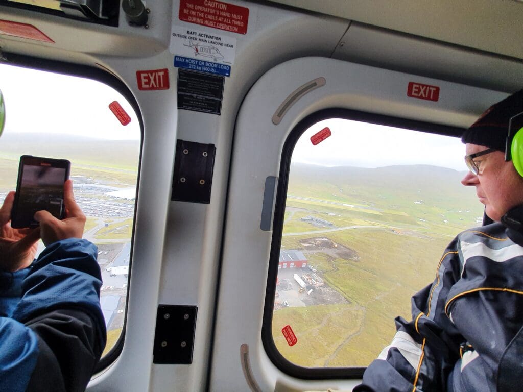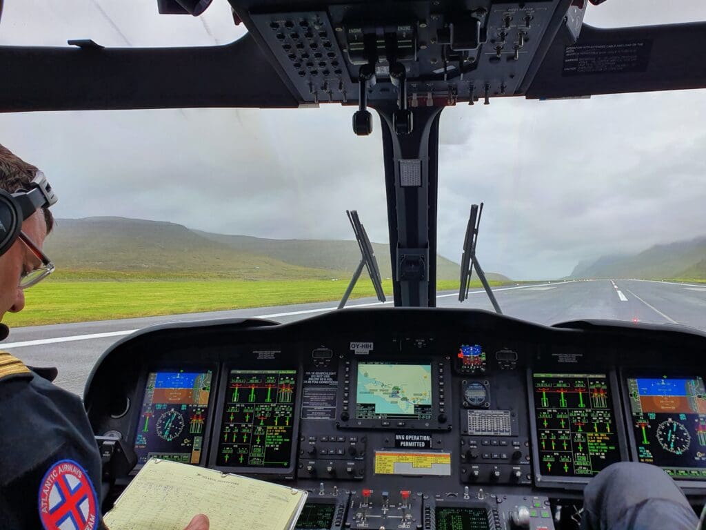 After the Danish version of the pilot’s announcement had come to an end, following a fair amount of switch flicking, calculations and form-filling by the first officer, the aircraft commenced its journey to the runway. Given the small size of Vágar Airport, this was reached in a matter of seconds and with no backtrack needed, the helicopter turned right before coming to a halt. Once there, unlike the Sikorsky S-76 that I had taken the previous year from Victoria to Vancouver, there was surprisingly little vibration when the pilot pulled up on the collective. Taking to the skies at 1103, the helicopter seemed to come to a hover for a few moments, before continuing to rise into the overcast Faroese skies and picking up speed.