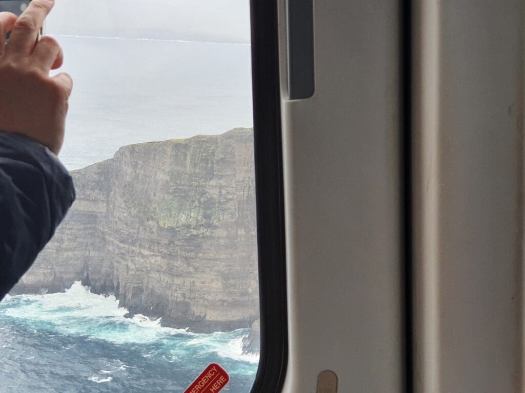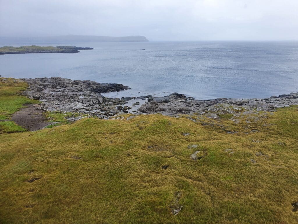 Up ahead, the small island of Koltur, the first stop on the helicopter’s journey could be seen through the cockpit windows and it wasn’t long before the island’s spectacular tall cliffs appeared, resulting in all those on the port side of the aircraft to snap away on their phones and cameras. At this point, the pilot could be heard once again as they announced that we were approaching the helipad in Koltur and advised that we would be landing in around a minute. As expected given the pre-flight announcement, as the aircraft descended towards the helipad, it shook a little in the wind and then vibrated significantly as the nose was pointed up and this decelerated in preparation for touchdown.