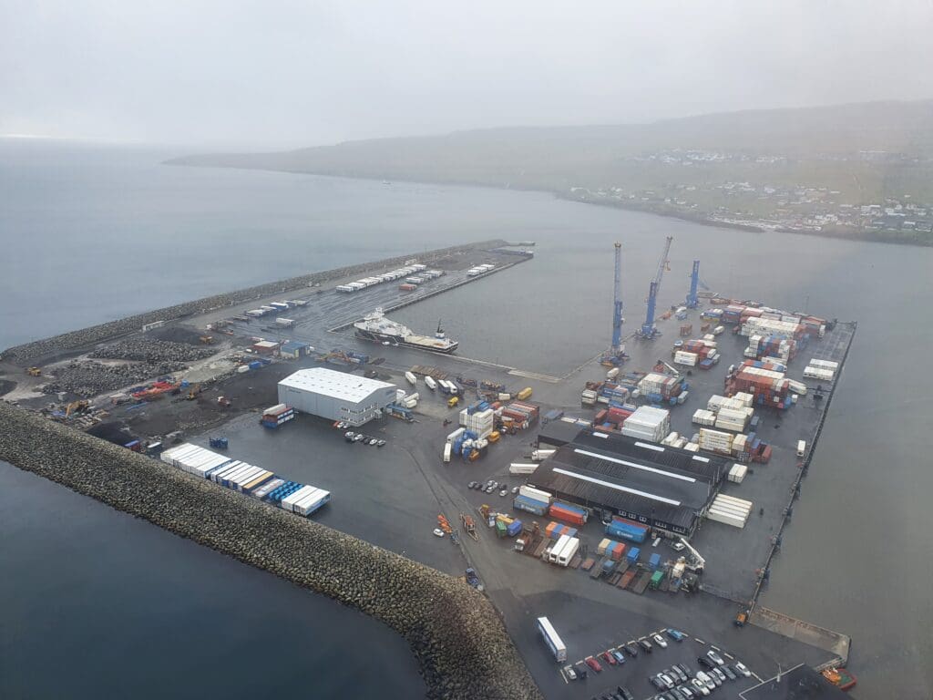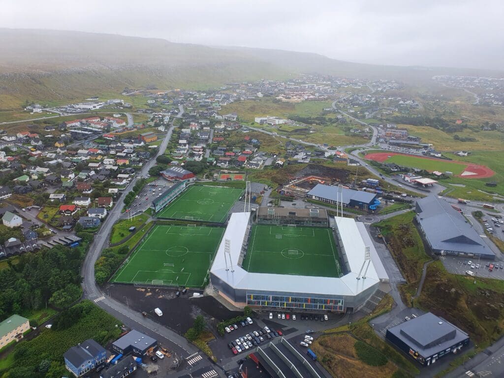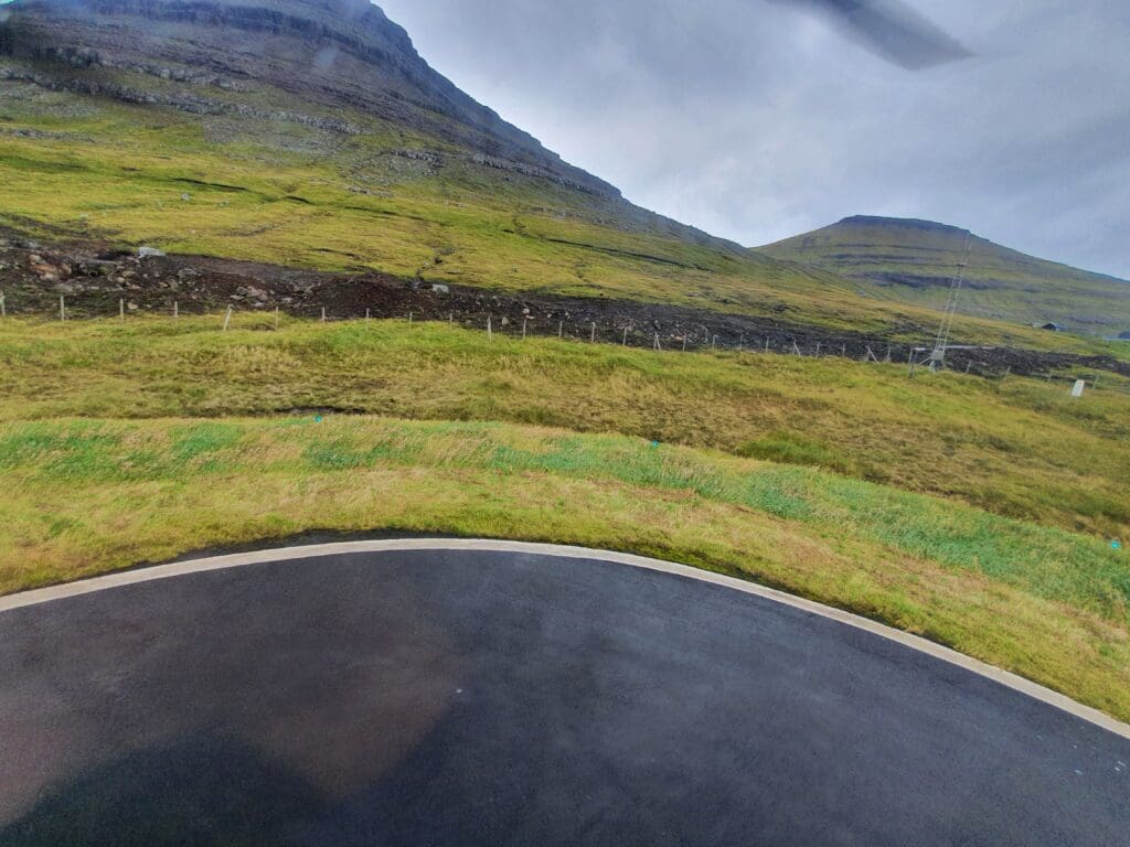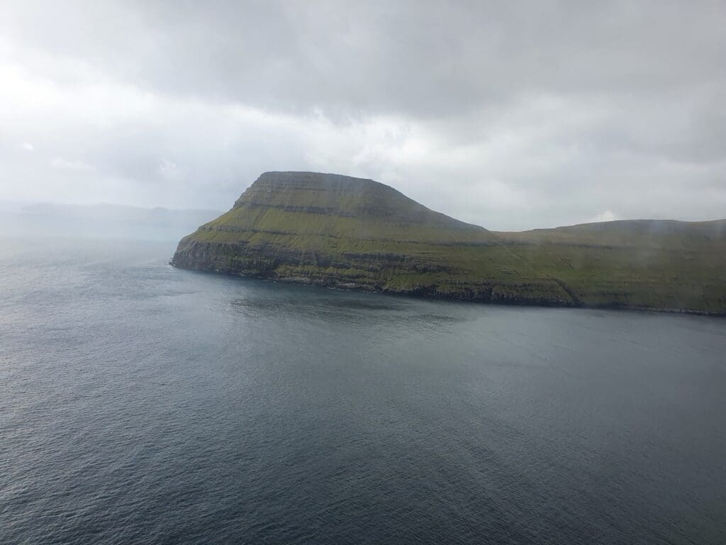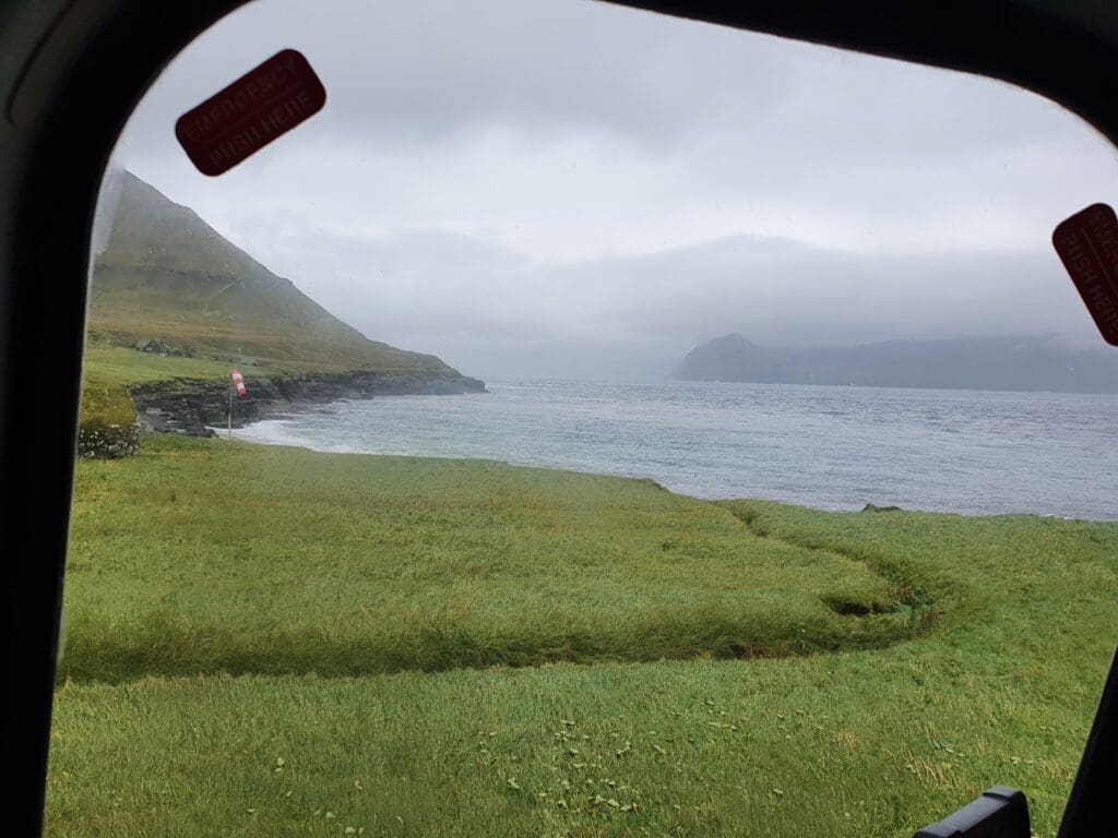 Outside, once all bags had been loaded into the hold at the rear of the aircraft, the door slid shut and the helicopter soon journeyed upwards into the cloudy skies. After leaving the helipad, the helicopter flew along Tórshavn’s coastline before crossing over its harbour and heading inland. Whilst those on the opposite side of the helicopter received views of the city’s historic sights such as Skansin fortress, the old cathedral and the quaint red wooden parliament buildings, sitting on the right I was treated to views of the docks, the city’s hospital and the football stadium, Tórsvøllur.