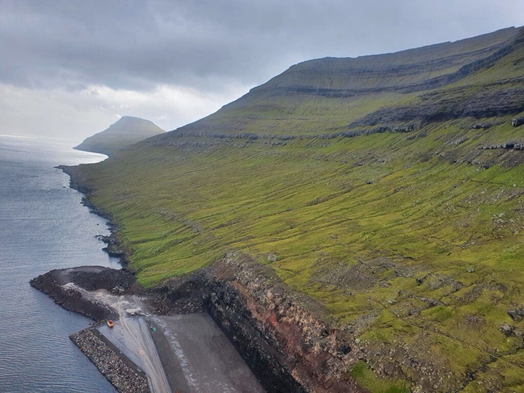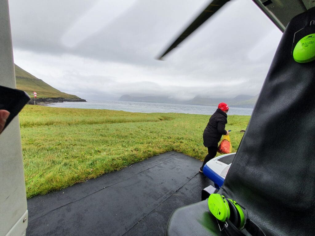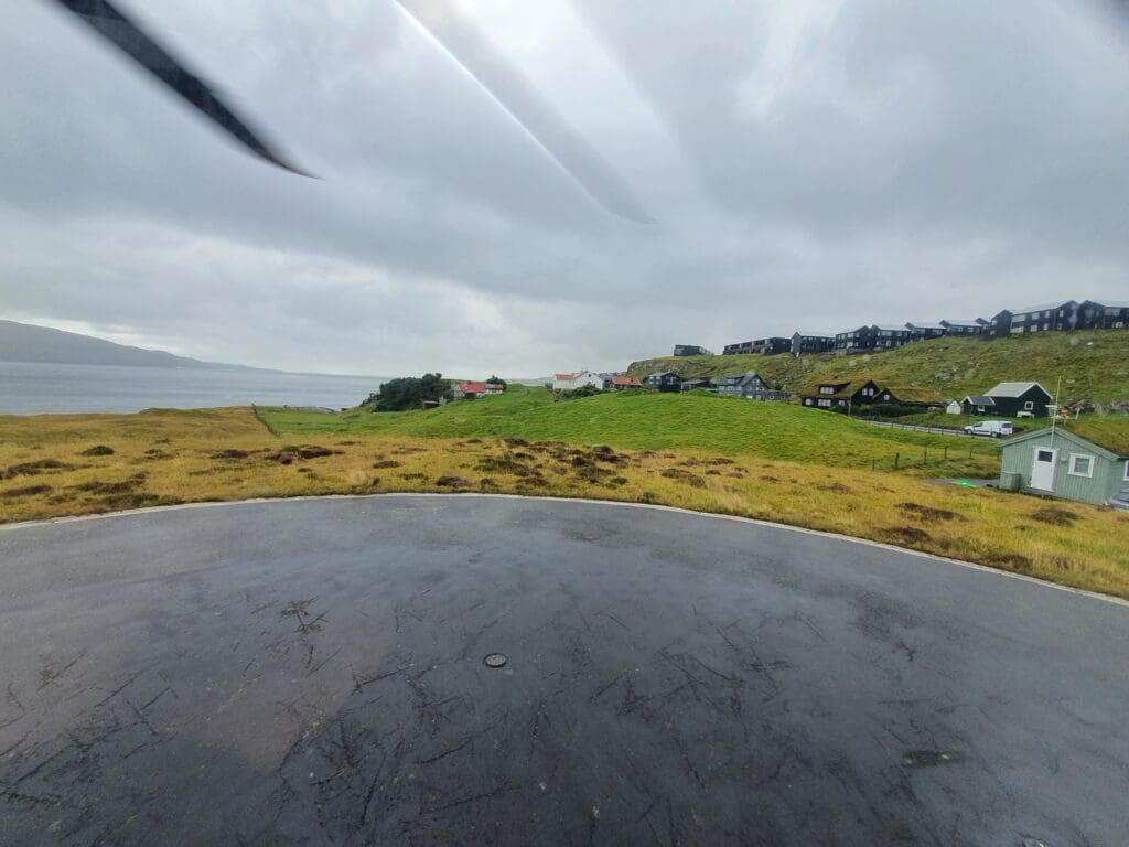 Flying just a very short distance above the waves, the helicopter crossed over the rocky shoreline before gently touching down seconds later on the island’s small helipad which sits sandwiched in between some traditional turf-roofed buildings and the choppy seas. With Wikipedia advising me that the island is home to just two residents (as per 2020), despite its natural beauty I suspected that most would remain onboard the helicopter to the Faroese capital. Indeed, once the helipad attendant dressed appropriately in a Faroese jumper opened the door, just two passengers disembarked, whilst nobody would join the flight on the island. Once these passengers had collected their baggage, the jumper-wearing ground agent poked their head into the cabin and gave a farewell wave to the passengers before sliding the cabin door shut. On a side note, positioned on the route between Vágar and Társhavn, and with all helicopter services between the two stopping off there, Koltur is one of the more frequented heliports in the Faroes despite being one of the Faroes’ smallest inhabited islands. As per summer 2022 schedules, the heliport saw eight flights per week popping in.