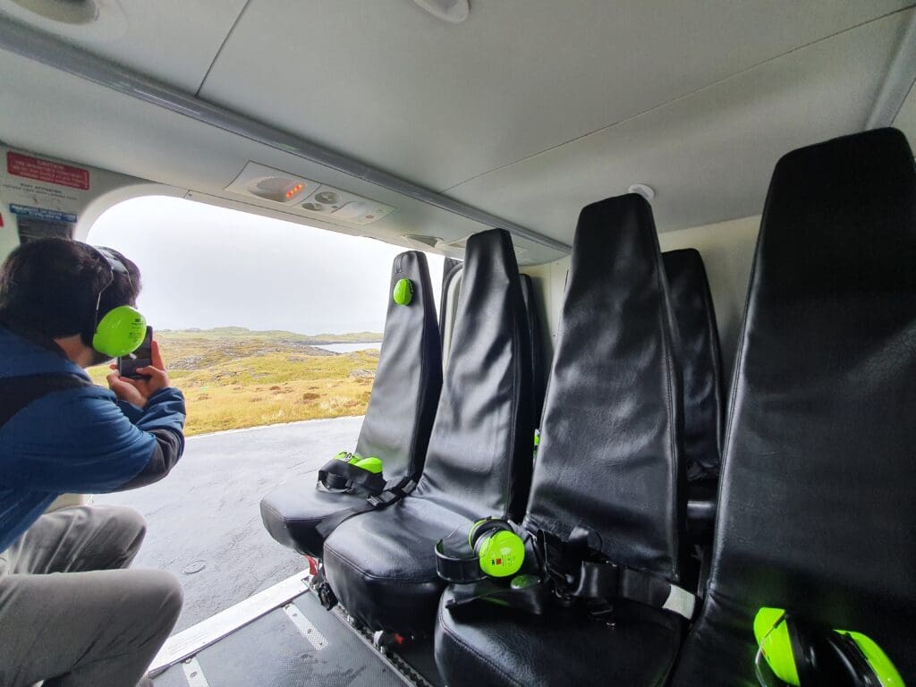Inside, Atlantic Airways’ AW139s feature a total of twelve passenger seats arranged in three rows. The first row features four rearward-facing seats, whilst the second row faces forward introducing the potential for awkward eye contact for those in the forward part of the cabin, meanwhile, the rearmost row is complete with four forward-facing seats. By the time I had disembarked the bus, ‘good’ seats were at a premium with no window seats left. I thus plonked myself down on what would be 1C were the aircraft to have seat numbers as when turned around, this would provide me with a good view of the action up ahead. Whilst I was not flying the Faroes’ helicopter service for comfort, those who were perhaps expecting an executive helicopter level of luxury would have likely ended up very disappointed. Inside, the seats were firm, thin and narrow, with each of these covered in a dark (faux?) leather covering. Meanwhile, all passengers were in for a rather cosy ride, with not much provided in the way of personal space! Other than the seats, as with a more ‘orthodox’ airliner, the AW139 comes complete with seatbelt and no smoking signs, along with reading lights and personal air vents overhead. Finally, whilst the cabin appeared to be clean, a few scratches and marks could be seen – although this was to be expected given the rough and ready nature of the operations that Ruth partakes in.