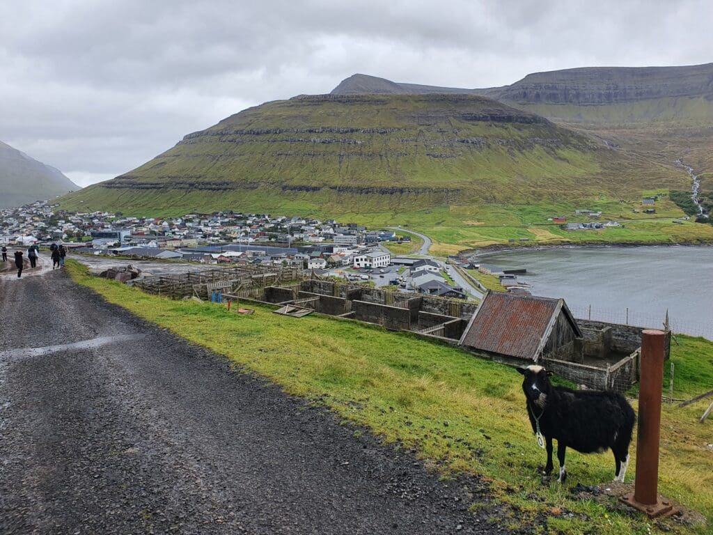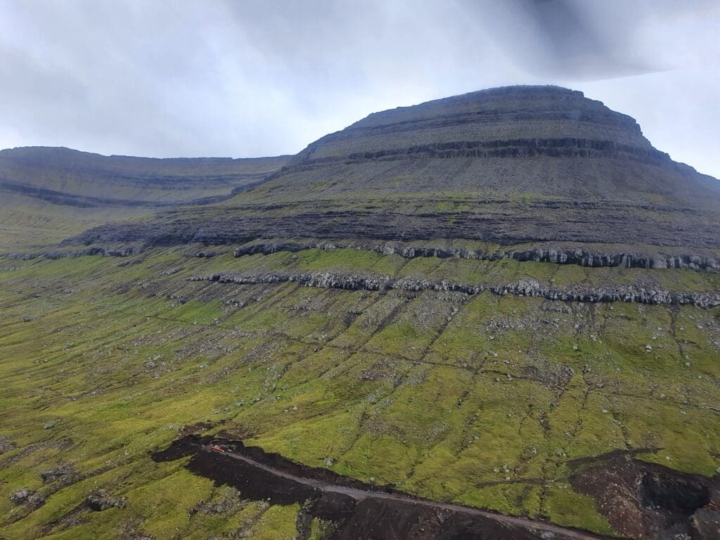 As expected, that morning, most passengers disembarked in Klaksvík and following the crowds I jumped out of the helicopter and picked up my bag which had been placed at the rear of the helicopter. Once outside, indicating my fellow passengers’ status as tourists, most snapped away at the helicopter, taking plenty of photos before being shooed away by one of the two members of ground staff to allow the helicopter to depart off to the remote Northern Isles. Sitting above the town, unable to check in to my accommodation until 1600, once off the helicopter I decided to head up rather than down and hike to the 413-metre-tall peak of Klakkur. Whilst proving to be a slightly arduous walk with plenty of slipping and sliding, once I reached the summit, I most certainly did not regret this, with this allowing for fantastic views of Klaksvík and the surrounding mountains and fjords!