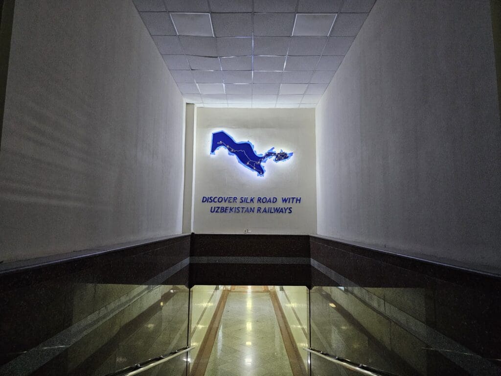 As with most transportation facilities in Uzbekistan, only those with a ticket are allowed inside the station building, and it wasn’t long before I reached the gate line and small security hut. Once inside, I was promptly greeted in Russian by a large security guard dressed in semi-military attire who checked my ticket and passport before I had my bag x-rayed and passed through a metal detector. Making it through without any issues, I continued onwards and entered the grand station building. Having arrived with an hour and twenty minutes until my train’s scheduled departure time and with just one other departure before this, unsurprisingly, the station was near empty, with far more station staff dressed in Uzbekistan Railways’ almost military-like uniform than passengers. Inside, I found the station to be clean, modern and tidy, and this left me with little to complain about. For those wanting to buy snacks for their journey, multiple counters could be seen, whilst several stalls could be found outside on the platform and in the open-air waiting area.