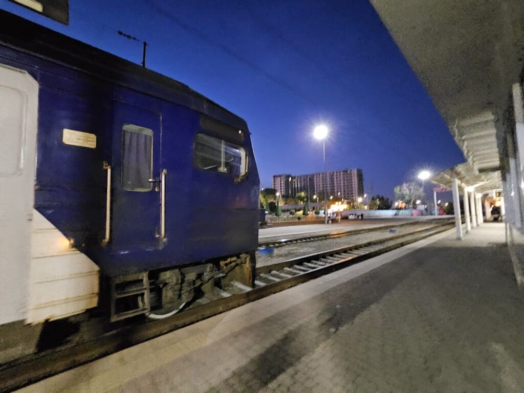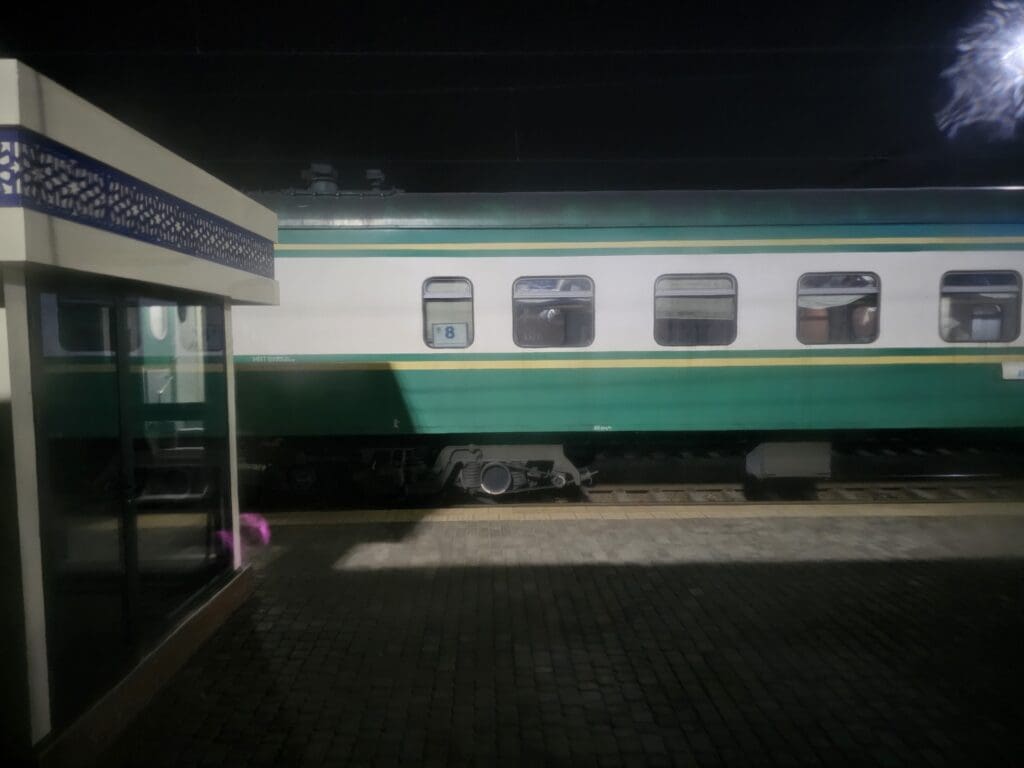 In spite of the noise coming from my cabinmate’s phone, as we rattled through the Uzbek countryside, I managed to successfully get about twenty minutes of sleep. Around an hour and a half after leaving Jizzakh, the train pulled into Uzbekistan’s second-largest city and one of its tourist hubs, Samarkand. There, once again plenty of passengers joined the train and this seemed to wait for quite some time before continuing onwards. Eventually, a train on its long journey from Termez, a city which sits on Uzbekistan’s border with Afghanistan, to Andijan on the far eastern side of the country pulled up to the opposite platform. Presumably having had to wait for this train to clear the line ahead, a short time later we were on the move again and soon the lights of Samarkand faded off into the distance.
