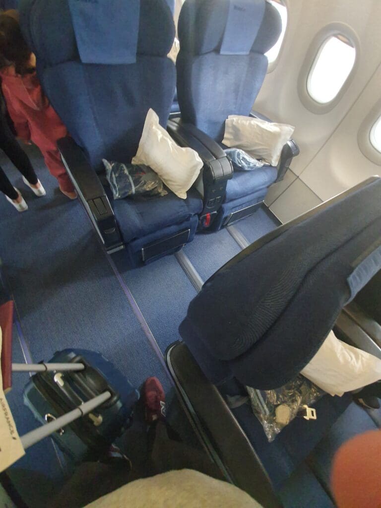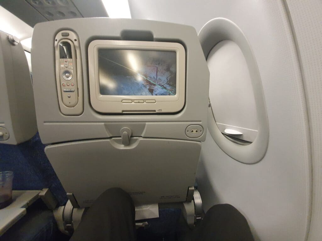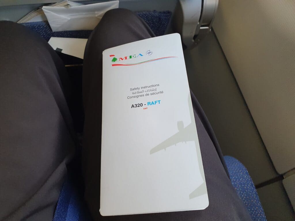 Without too much delay, I slid into Seat 28F which offered a good view of the wing albeit through a slightly scratched window. Meanwhile, through this, I also got a decent view of one of the few other aircraft at the terminal, a Middle East Airlines Airbus A330 preparing to head up to Istanbul. As I explored the area around my seat, my first impressions were a mixture of positive and negative. Starting with the legroom, the amount provided was far from enormous and was hindered by the presence of an obtrusive footrest, yet, at the same time this was still acceptable. Meanwhile the seat itself was both well padded and comfortable and I would thus probably have few complaints about this on one of the aircraft’s longer flights over to Western Europe. Despite the aircraft’s quick turnaround, importantly the area around my seat appeared to be clean with no crumbs or rubbish visible upon boarding. However, despite still being a relatively young aircraft, the cabin appeared to be in a tired-looking state with plenty of marks and scratches visible around my seat. Turning to the seat pocket, this contained a Middle East Airlines branded sickbag alongside a copy of the airline’s Cedar Wings magazine. As on the Air France 777, the all-important safety card enjoyed its own pouch ensuring that this was unmissable and easily reachable when seated. Unlike in Cedar Class, no pillows or blankets were placed on seats in Economy, however, the crew seemed to be willing to hand these out to those who requested these both on the ground and inflight.