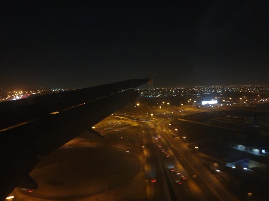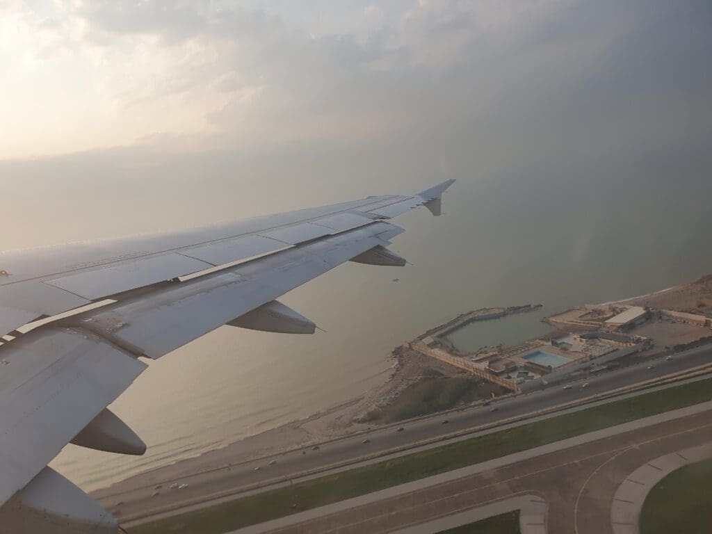 At the time of my flight in February 2020, the number of airlines operating flights through Syrian airspace was by no means small. However given the country’s longstanding conflict, it is perhaps fair to say that a number of passengers (particularly those from outside the region) may oppose the idea of flying through Syrian airspace. However, without doing so, any flight from Lebanon to the Gulf and vice versa would be required to take a mammoth detour via either Turkish or Egyptian airspace. Holding confidence in Middle East Airlines’ planners and risk analysts, I was not too concerned when, just under 20 minutes after leaving Beirut, the Airbus A320 proceeded into Syrian skies around halfway between Damascus and Homs. At this time, the clouds beneath us had already partially parted giving a small glimpse at the Syrian countryside. However, the combination of haze and fading light prevented any good views as we cruised eastwards, cutting across the south of the country.
