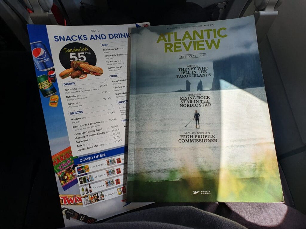 Returning to the route, ten minutes after leaving Denmark behind, the Norwegian coastline appeared where a good view of the city of Kristiansand was offered. Unfortunately, after passing this, little could be seen of Norway’s famous picturesque fjords as a thick layer of clouds rolled in below. With nothing but clouds to see below, I decided to explore the inflight entertainment options onboard. Passengers flying onboard Atlantic Airways’ Airbus services are treated to the carrier’s Atlantic AirFi streaming service and so high above Norway, I decided to connect to this. Initially taking some time to connect, once I was in, I was left rather impressed by the breadth of content offered by the system. Those looking to pass the time could watch one of 29 Hollywood hits, 28 television programmes or watch and listen to a wide array of other videos and podcasts, with all video content commencing with an advertisement for Vágar Airport’s duty free shop. Meanwhile, a selection of the latest magazines and newspapers from Denmark, the Faroe Islands and the UK was also offered. These came in addition to the buy-on-board menus, information about the airline, a feedback form and one of the more novel features of the system, a page of videos of locals saying Faroese phrases of varying levels of appropriateness! Last but not least, an interactive moving map was provided allowing passengers to track the progress of the flight. Whilst inflight entertainment was not a necessity on the relatively short flight across to Vágar, I can imagine this may be a welcome feature on some of Atlantic Airways’ longer services to Southern European sunshine destinations and I was left very impressed with the system. Other than this, the Atlantic Review magazine is also on hand for passengers to pass the time.