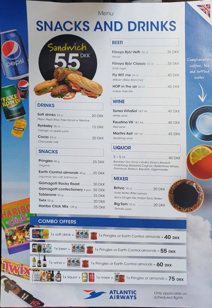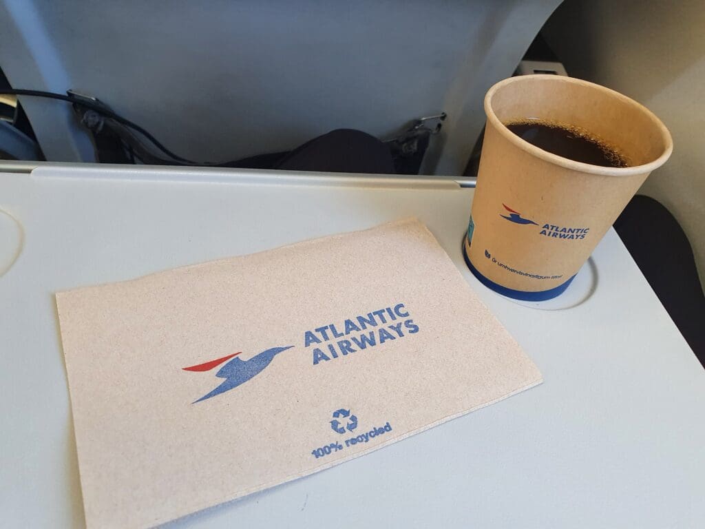 Following a 12-minute crossing of the Kattegat, the aircraft reached the Jutland Peninsula and crossed over its sandy shores near the mouth of the Limfjord. Crossing over the far north of the peninsula, the northern tip of Denmark could be seen in the distance as well as a cluster of towns rising out of the flat countryside. At this time, the onboard service commenced with two trollies rolled out – one from the front of the cabin and another from the rear. Whilst no free snacks are offered, those flying onboard Atlantic Airways’ Airbus-operated services are treated to complimentary tea, coffee and water, with a buy-on-board service provided for those looking for something a little more substantial. Whilst not intending on splurging out on any drinks or snacks, I did have a quick browse of the compact menu. Onboard, Atlantic Airways sells a reasonable selection of drinks, both alcoholic and non-alcoholic, alongside a few snacks and sandwiches – with cheese and ham, and chicken and bacon stocked on the service that day. Given the Faroes’ reputation for high prices, I wasn’t expecting the items on this to be particularly cheap. However much to my surprise, these were sold at fairly reasonable prices that were cheaper than comparable items for sale at Copenhagen Airport. For example, a 330ml can of Faroese beer would have set me back 35kr, whilst a Twix bar that would have cost 30kr in the terminal only cost 20kr onboard! Meanwhile, the most substantial items on the menu, sandwiches, came in at 55kr. Rejecting any paid options, when a friendly flight attendant reached my row I opted for a black coffee which was passed to be in a small Atlantic Airways branded paper cup alongside a serviette. Meanwhile, once the service had reached its end, a couple of crew members passed through the cabin offering top-ups of tea and coffee. Whilst I rejected this offer, I nevertheless thought this to be a nice touch.