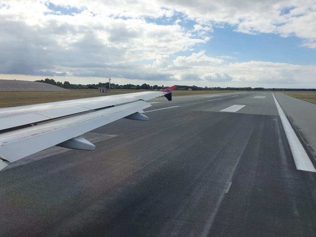 As the safety demonstration was underway, at 1223 the aircraft could be felt being pushed back away from the gate, during which the Airbus’ two CFMI CFM56-5B4/P engines quietly hummed into life. Following the usual pause whilst the tug disconnected from the aircraft and retreated to a safe position, with ‘flaps 1’ selected at 1226 the Airbus began its taxi to Runway 04R. During the initial stages of our taxi, several flight attendants passed through the cabin ensuring all was in place for our departure before strapping themselves into the jumpseats in the Airbus’ forward and rear galleys. Following an uneventful taxi, the Airbus arrived at the end of the runway at 1232 and made its way onto this without any holding. Once there, the aircraft came to a brief stop before the engines were spooled up as the brakes were held. A short time later, these were released, sending the Airbus shooting off down the runway and soon rotating upwards into the sunny Danish skies, allowing those on the right-hand side of the aircraft a good view of the airport’s quiet cargo apron.