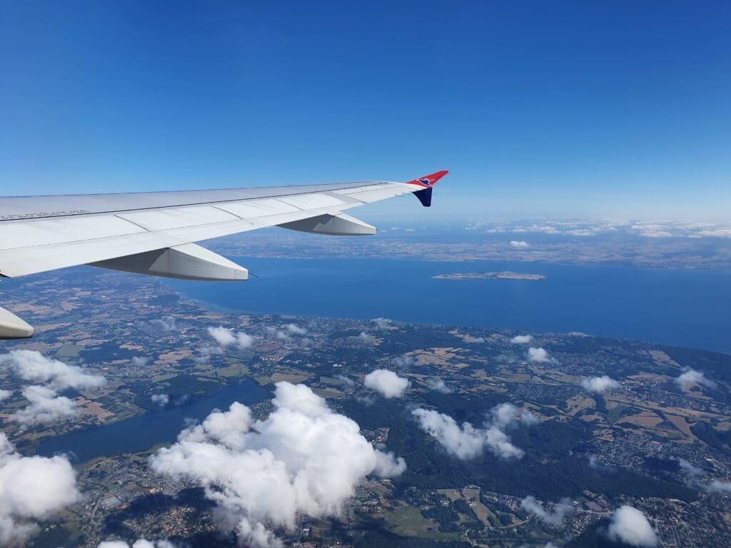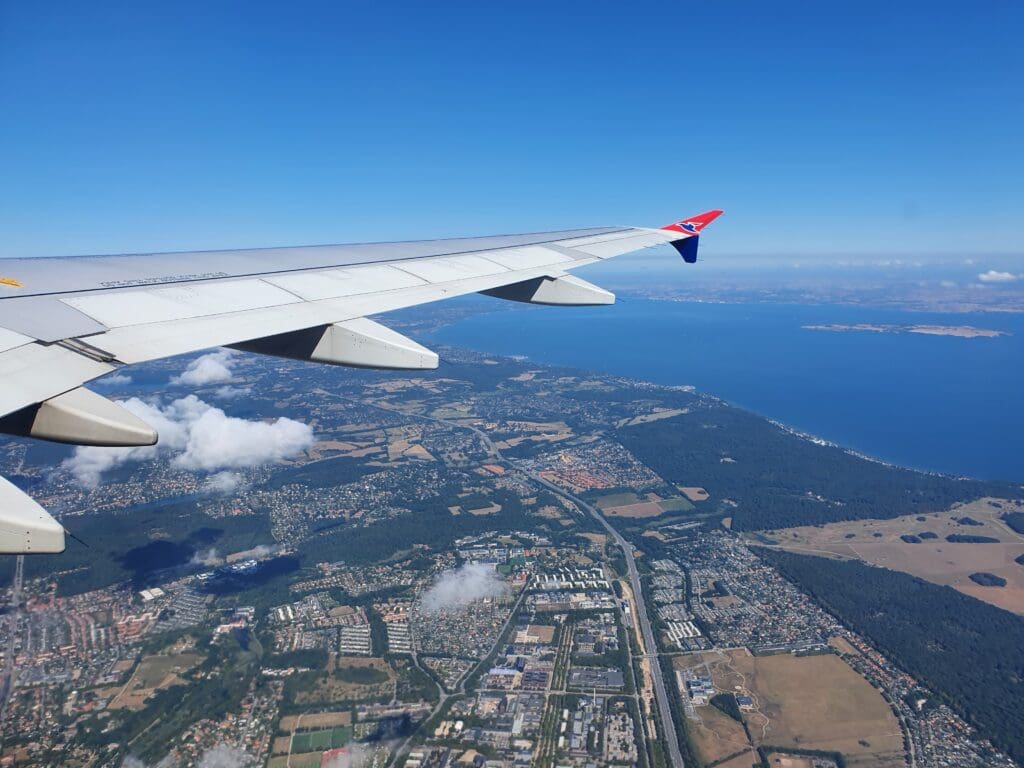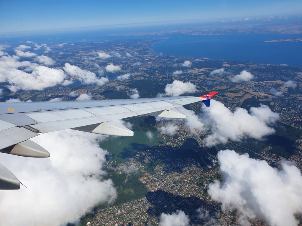 Returning my attention to the outside world, a few short minutes after leaving the beaches of the Capital Region, a small and picturesque beach-lined island could be seen. Passing to the south of this at an altitude of 34,000 feet, I managed to spot a small harbour, a settlement, a lighthouse and an airfield. This turned out to be the island of Anholt – a small island home to no more than 150 residents that sits approximately halfway between the coastlines of Denmark and Sweden. The airfield there is served by Copenhagen Air Taxi who operate a Britten-Norman Islander service from Copenhagen’s ‘other’ airport, Roskilde. This was followed a short time later by the larger island of Læsø, although sitting a fair way to the north of our flightpath, I wasn’t able to make out any of the island’s sights.