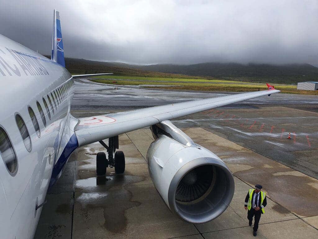 Following a pleasant 1H55 in the heavens, at 1327 the Airbus touched down on Runway 30 with a firm bump before decelerating rather rapidly as the pilots attempted to stop the jet on Vágar’s wet and relatively short runway. Moments after touching down, Atlantic Airways’ yellow hangar appeared, near which the airline’s two AgustaWestland AW139 helicopters could be seen resting in between flights. This was followed by the terminal where a single Atlantic Airways Airbus A320neo could be seen next to a former Atlantic Airways Airbus A319 painted in the colours of the short-lived Spanish carrier, Lattitude Hub. Finally, one other aircraft could be seen on the ground at that time which took the form of a rather surprising visitor, a Brazilian registered Embraer Legacy 650 which further research revealed to be operated by the bank Daycoval. With just one taxiway leading off Vágar Airport’s runway, the Airbus was required to make its way to the end of the runway before cautiously turning around and heading back along the runway. As the aircraft backtracked along the runway the Purser thanked passengers for flying with Atlantic Airways and welcomed those onboard to the Faroes.