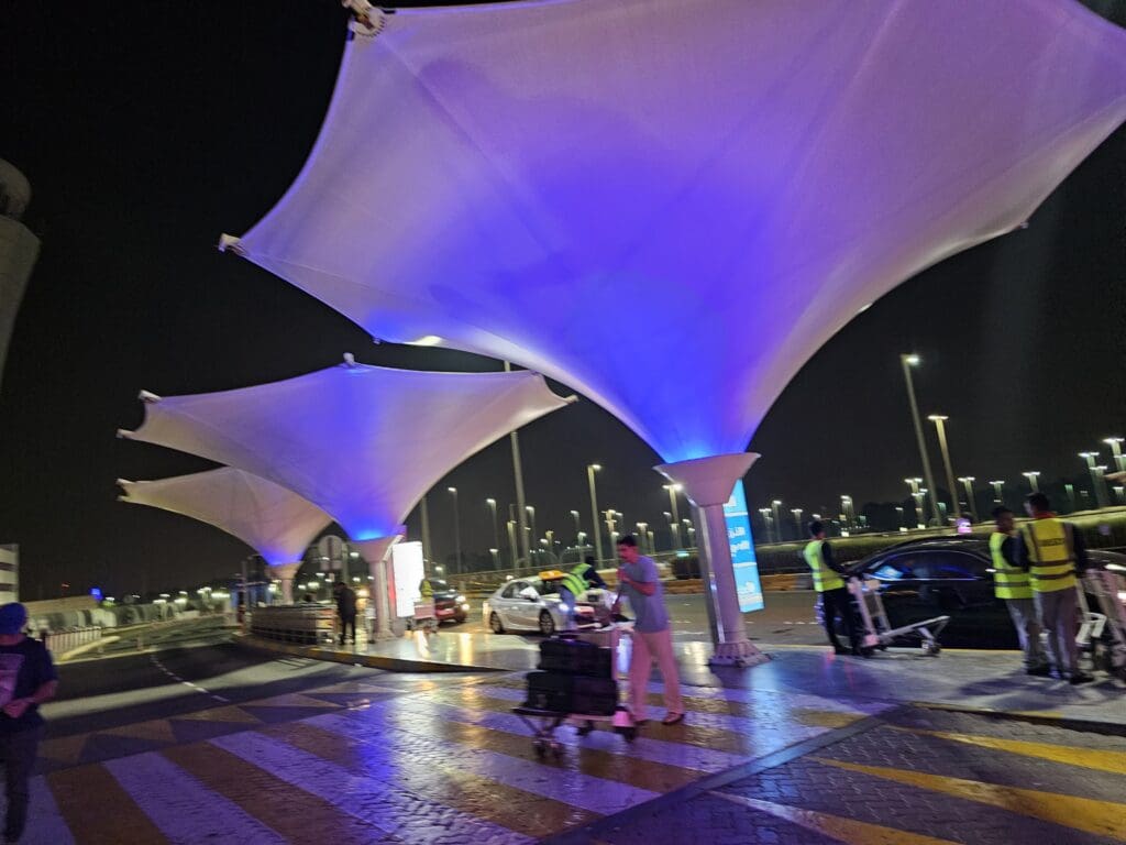 Soon, we hit the busy streets of Abu Dhabi and came to a halt at a petrol station where the meter continued to run as the driver filled up the car. Whilst I could have complained about this and almost certainly had my Dirhams refunded, I decided that this was not worth the hassle and overlooked this before we continued on our journey to the airport. Soon speeding out of the city on the motorway, I was treated to one last glimpse of the majestic Sheikh Zayed Grand Mosque before this was replaced by the sight of a mishmash of tall residential and office buildings, industrial facilities and houses, as we headed out into the desert. Whilst a fair number of cars could be seen on the road that morning, we encountered no jams and no more than fifteen minutes after leaving the hotel, the sprawl of Abu Dhabi Airport appeared. Travelling in October 2023, a little over a month before the opening of the airport’s new terminal, at the time of my trip, Abu Dhabi Airport was comprised of three terminals, logically named Terminals 1, 2 and 3. Of these, Terminals 1 and 3 are conjoined, whilst Terminal 2 is smaller and sits some distance away from the other two terminals. In terms of users, Terminal 3 served as Etihad Airways’ dedicated terminal, whilst the other two terminals serve a smorgasbord of other operators at the airport, with most flights using Terminal 1.