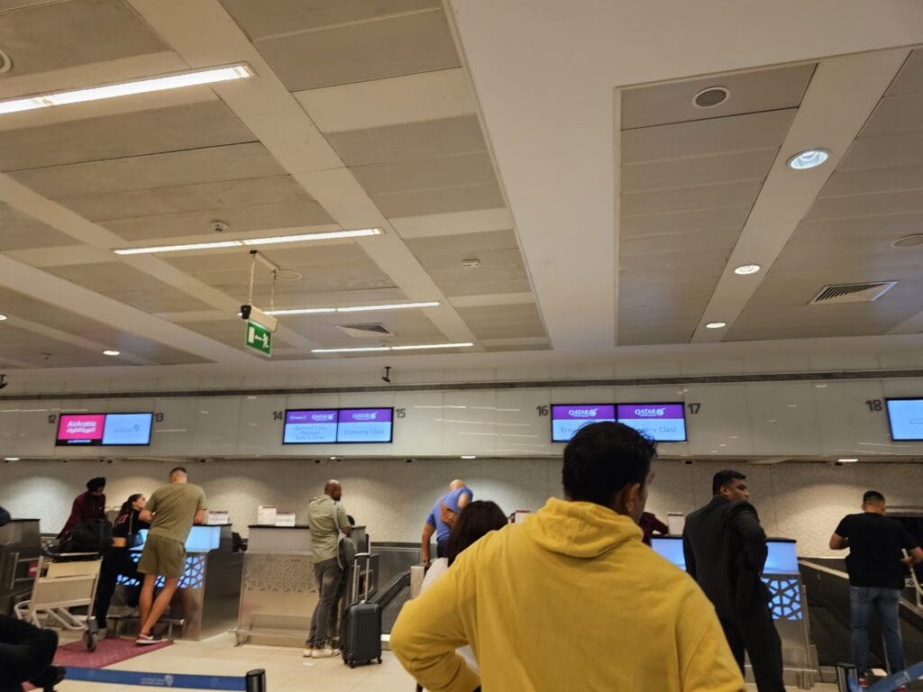 Seeing as I had already checked in online and downloaded my boarding passes, following a very quick walk through the terminal, I saw no reason to stay there and made a beeline for the entrance to the passport control area. Soon joining the scrum of passengers waiting to pass through, a couple of minutes later I reached the line of automated barriers, where one of the assistants took a look at my boarding pass before advising me to head back to check-in to receive a paper pass. With around two hours to go before my flight was scheduled to head off to Abu Dhabi, I was not particularly perturbed by this, although at the same time, I wasn’t too enamoured by the prospect of additional queuing. Turning around, I soon reached Qatar Airways’ check-in zone where four desks had been assigned to the Doha flight – three for those in Economy and one for those in Business and with Silver, Platinum or Gold status of Qatar Airways’ Privilege Club.