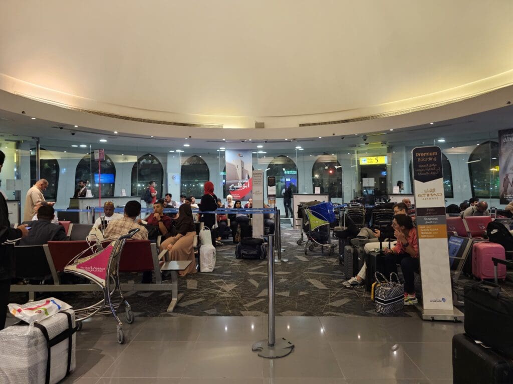 Once I had paid the reasonable fare of 59 Dirhams (around £13.20), I made my way into the check-in hall where I was welcomed by scenes of relative chaos. At that time in the morning, check-in was underway for the thirteen early morning departures of Air Arabia, Pegasus, Qatar Airways, Royal Jordanian, Turkish Airlines and Wizz Air Abu Dhabi. Thus, crowds of passengers, many of whom appeared to be travelling with massive piles of luggage, could be seen leading up to many of the terminal’s check-in counters. In terms of size, the landside portion of Terminal 1 is relatively small and undoubtedly harks back to an era before planners could have envisaged Abu Dhabi transforming into the major international hub that it is today. Yet, despite the crowds, I found the landside portion of the terminal to be clean and functional and home to a few cafés and shops for those with some time to spend before heading airside.