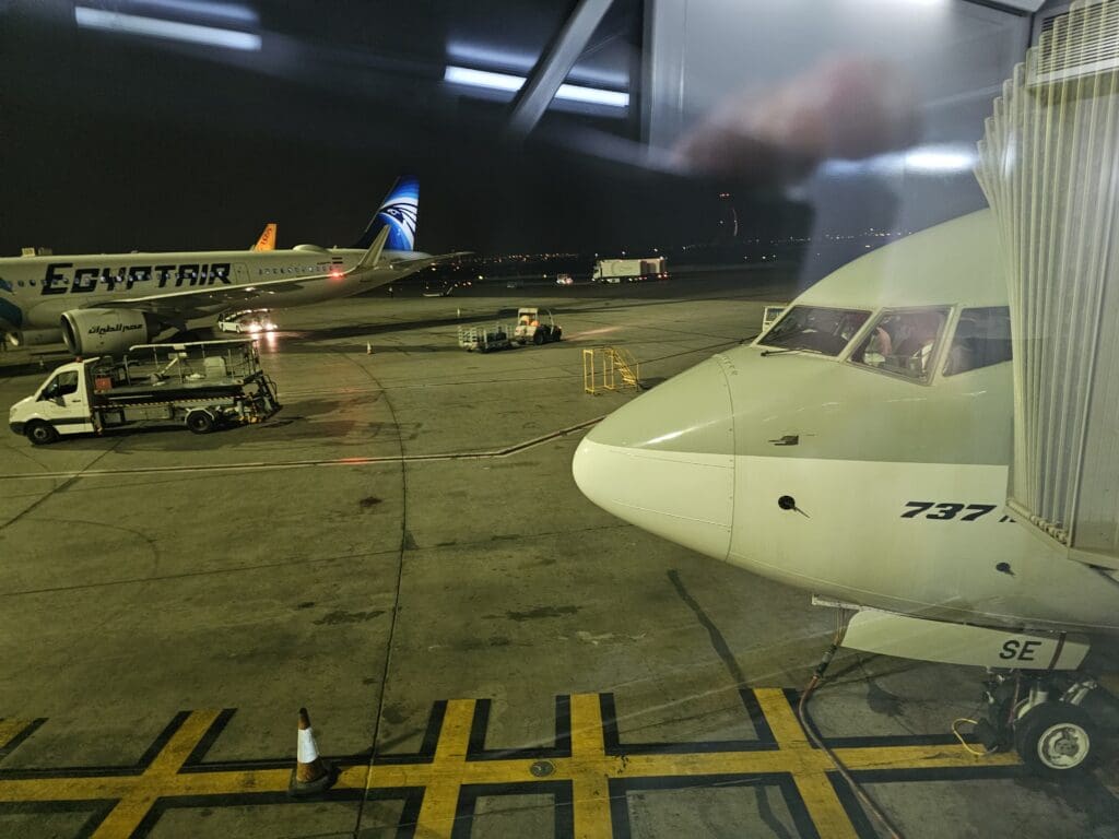 After a wander around the terminal, I decided that I ought to head down the pier that is home to gates 5 and 6. Upon arriving there, with a Cairo-bound EgyptAir Airbus A321neo about to start boarding through the neighbouring gate, this was rather busy, although this soon began to empty once boarding for this flight commenced at 0450. Whilst boarding for the Doha service had been advertised as commencing at 0455, this time came and went with no gate staff appearing and no sign that this was to commence any time soon. However, sceptical that it could take an hour to fill a 176-seat Boeing 737, this was not particularly surprising. Soon enough, several gate staff appeared, at which point a crowd of eager passengers swarmed around the gate podium. At 0510, an announcement was made inviting those travelling in Business, requiring assistance and/or elite members of the Privilege Club frequent flyer programme to proceed forward for boarding. This was followed by those passengers in Zone 1 at which point the floodgates opened, and all passengers shifted forward, however, the gate staff ruthlessly turned back all those passengers who did not fall into this category.