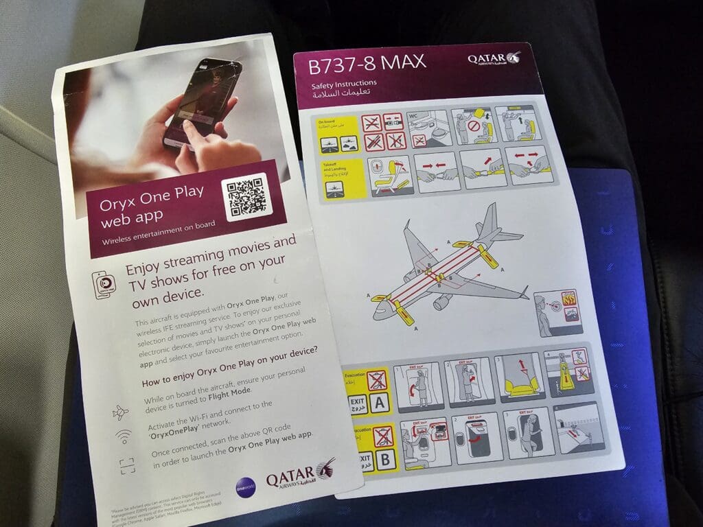 Almost as soon as boarding was announced as complete, ground staff were advised to leave the aircraft, and the reassuringly calm-sounding French Captain performed their welcome announcement. During this, they thanked passengers for flying with Qatar Airways, advised that we would be cruising at an altitude of 18,000 feet and would have a journey time of 54 minutes, introduced the First Officer and Purser, and ended this with a promise to update us with latest weather and encouraging us to enjoy the carrier’s ‘world-class service’. This was followed by the purser’s welcome, after which the crew took to the aisle and commenced a manual safety demonstration whilst the purser remained on the PA and read through the safety instructions. Given the start and end point of the flight, I was slightly surprised to find that no Arabic version of this was undertaken, either in person or via a pre-recorded announcement.