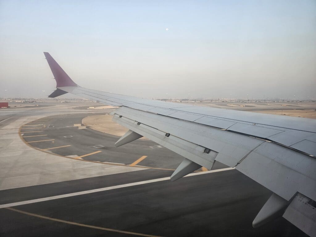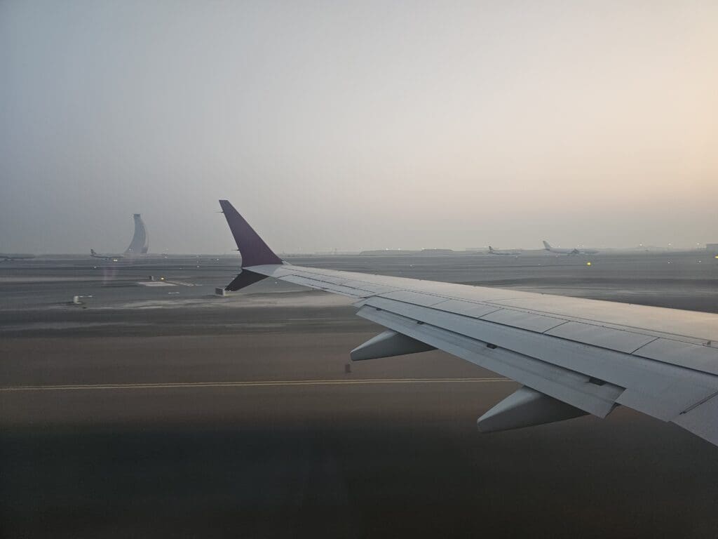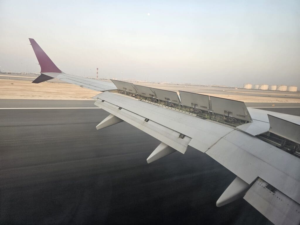 As we trundled up the coastline towards Doha, the city of Al Wakrah could be seen alongside a cluster of industrial facilities. A few short moments later, the Boeing sank over the green southern perimeter, which, were planespotting to be an acceptable pastime in Qatar (apparently it’s not), would have proven to be a wonderful place to watch the morning arrivals. Reaffirming the fact that we were landing in Qatar, it wasn’t long before a sea of Qatar Airways jets of all sizes could be seen at remote stands. Ending our smooth 45-minute flight over from Abu Dhabi, the aircraft touched down on Runway 34L with a thud before decelerating with some vigour either to minimise our taxi time or clear the runway before the next arrival.