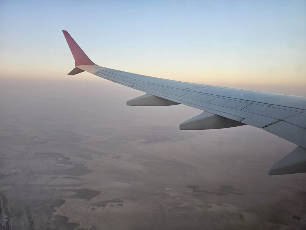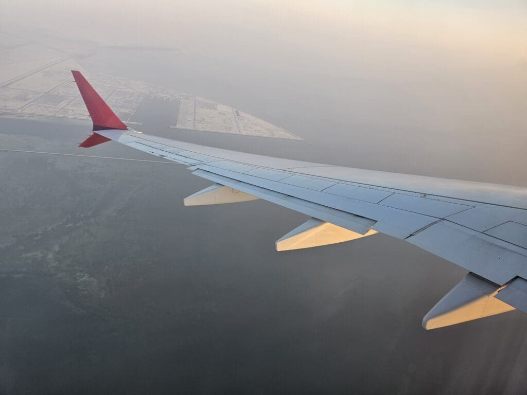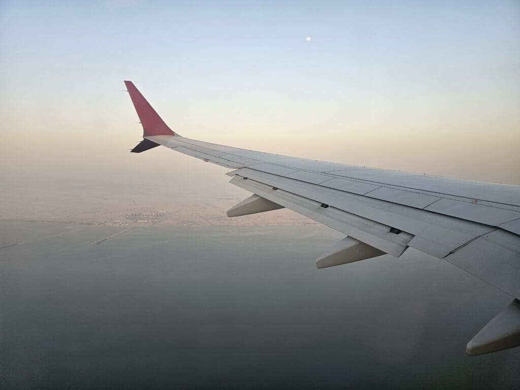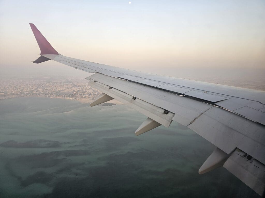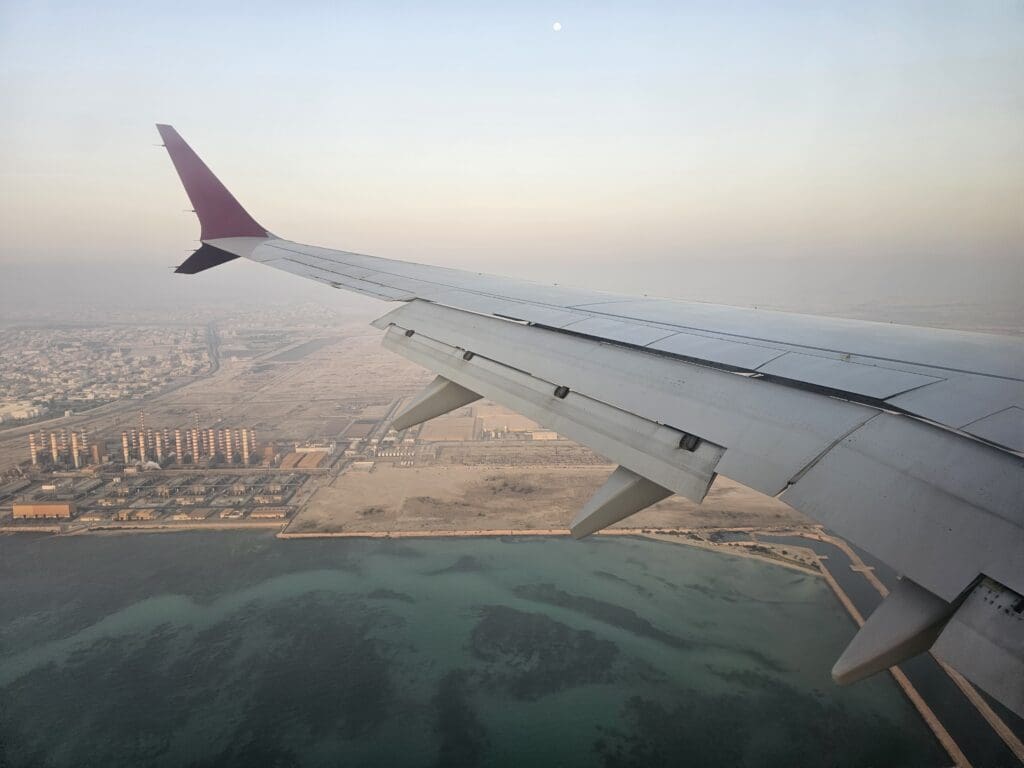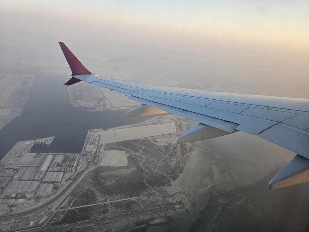 Upon reaching the island of Arzanah, which, like the others we had passed during the flight sits in the Emirate of Abu Dhabi, just seven minutes after levelling off the aircraft could be felt commencing its descent. At this point, the crew undertook one final pass through the cabin to ensure all was in place for our arrival. Outside, we soon crossed over the sandy shores of Qatar, making landfall near the city of Mesaieed. Heading northwards towards Doha, upon reaching the town of Birkat Al Awamer, which lies just beyond the capital’s southern fringes, the aircraft turned south away from the city and sped towards the massive but almost empty Hamad Container Port. From there, we turned north once again as the flaps dropped into position and we lined up for an approach to Doha Hamad’s Runway 34L.