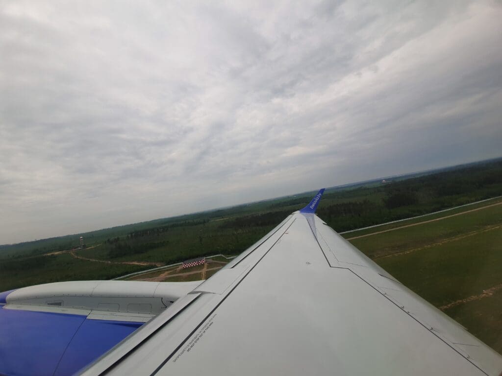 Following a very short pause on the runway, the aircraft’s two small engines powered up and the aircraft gently accelerated down the runway before rotating and making a shallow climb. At the time this felt somewhat reminiscent of the infamously shallow ascent we had experienced the previous day on Motor Sich Airlines Yak-40 that had delivered us to Belarus! As we left the airport behind, the green fields and woods surrounding this came into view before our aircraft banked to the right, rolling out on a westerly heading. At 0955 one of Belarus’ four air force bases came into view in the form of Minsk-Machulishchy which serves as the home of the military’s transport aircraft, however nothing could be seen on the ground at that time. This would serve to be my last glimpse of Belarus on the trip as moments later, the aircraft rose up into the thick layer of cloud.