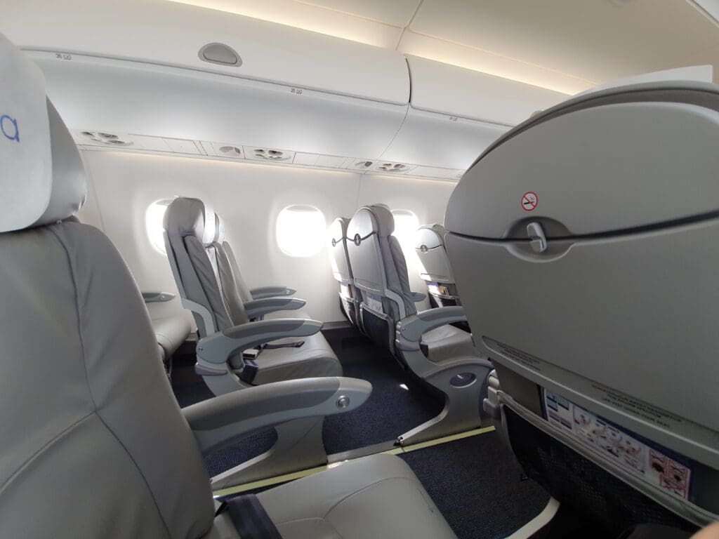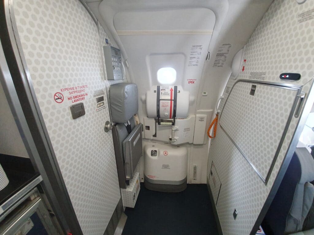 Following a long and bumpy passage through the clouds, after about ten minutes, the aircraft emerged from these and the seatbelt signs were extinguished. Now with the freedom to move around the aircraft, I decided to make a trip to one of the two lavatories onboard the aircraft – with just one, the rear lavatory, available for those travelling in Economy. Seeing as many passengers appeared to have similar plans, several minutes of waiting was required. As one would likely expect given the Embraer’s status as a regional jet, this lavatory was not the largest, however it appeared to be clean and in a good state, stocked with all the basics and lacking any notable signs of wear and tear. With no complaints, I soon returned to my seat and made myself comfortable for the flight.
