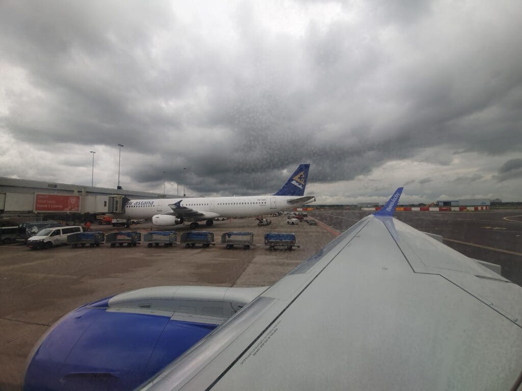 In no time the aircraft vacated the runway allowing a locally based KLM Cityhopper Embraer 175 to land a short time later. As the aircraft headed over to the terminal the Purser welcomed us to Amsterdam, noting the local time and outside temperature before thanking us for flying with Belavia. Whilst Amsterdam Schiphol is notorious for its long taxi times, having landed on one of the airport’s more centrally located runways, the journey to our arrival gate did not take too long that morning. After passing a selection of mostly narrowbody aircraft from across Europe waiting at the pier D gates, the aircraft pulled up Gate D22. There we joined a guest from Central Asia, an Air Astana Airbus A321 preparing for its return flight to Aktau. By coincidence I would stumble across this aircraft several days later in Almaty! After slowly pulling into the stand, the aircraft’s two General Electric engines spooled down and the seatbelt sign was extinguished Once again, the talkative Captain’s voice filled the cabin once again, making one final word of thanks for choosing to fly with Belavia and wishing us all a safe onward journey.